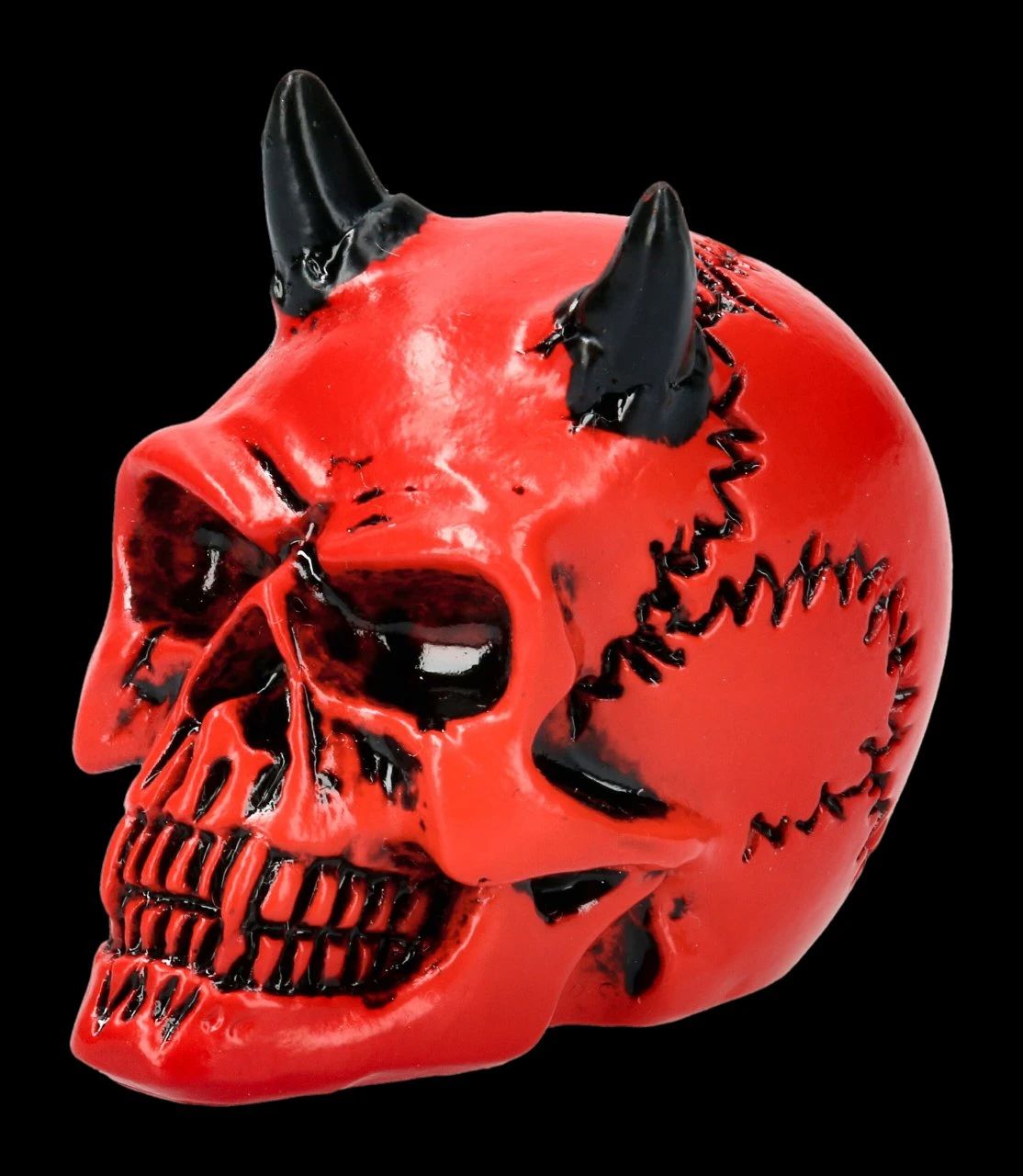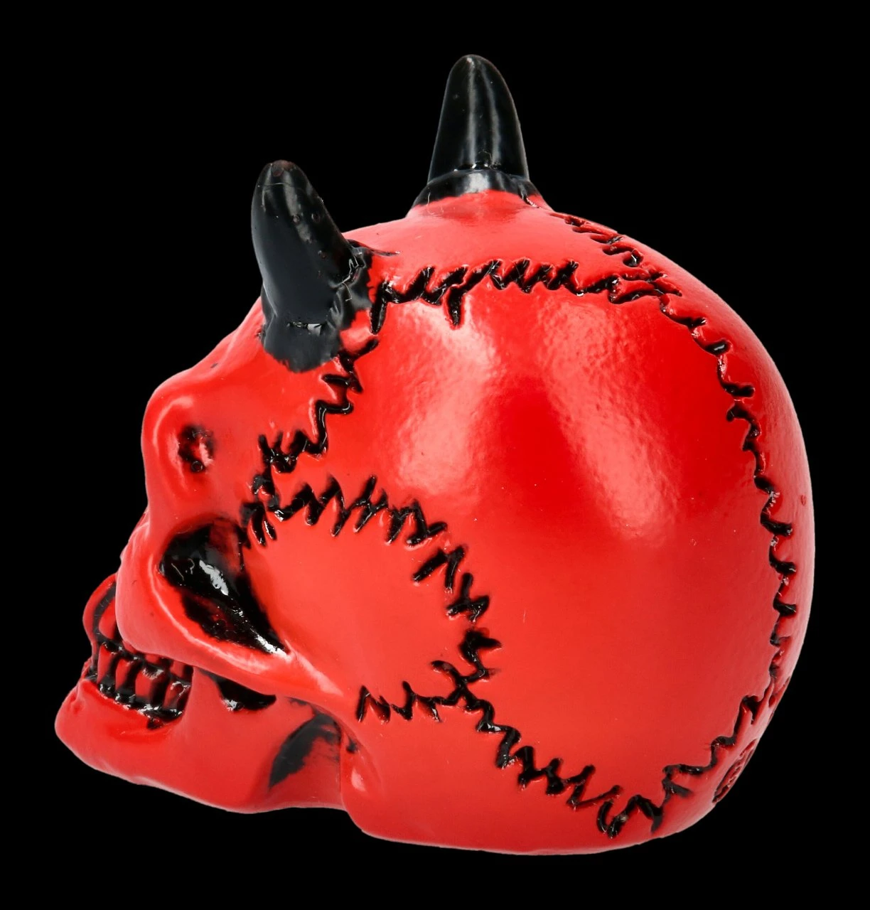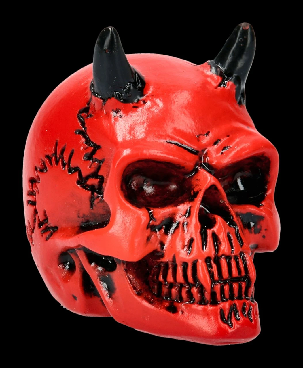 Auch wenn der kleine rote Teufel-Schädel von Alchemy England aus handbemaltem Kunststein (Polyresin) nur eine Höhe von 3 cm, eine Breite von 2,5 cm und eine Tiefe von 3,5 cm hat, ist der kleine rote Teufel außerordentlich detailliert dargestellt.
