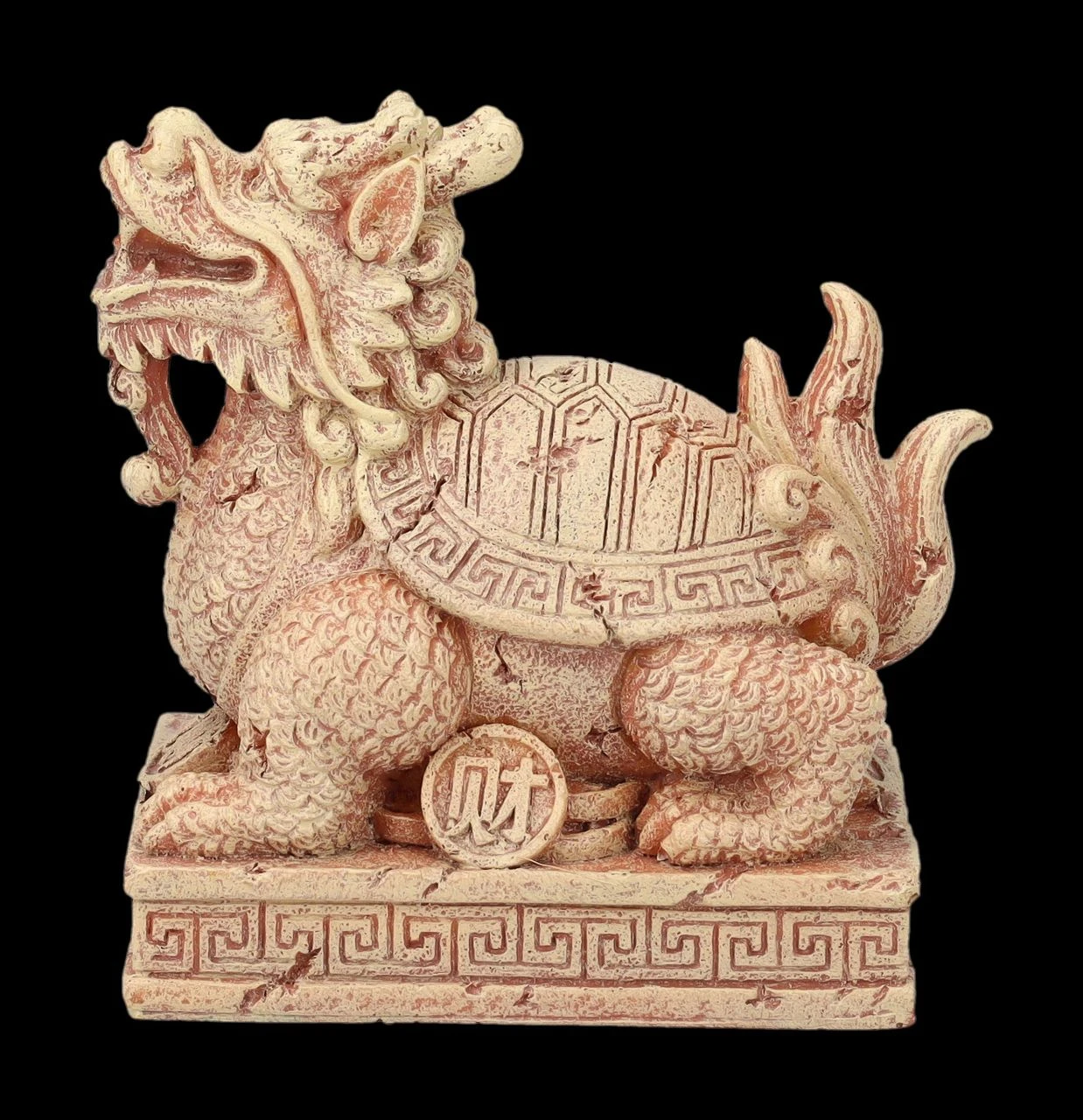 Schildkröten können sehr alt werden, daher stehen sie in asiatischen Ländern für Langlebigkeit, Weisheit, Stärke und Ausdauer. Neben dem Drachen und dem Phönix zählt die Schildkröte zu den Glück bringenden Wesen. In der chinesischen Sternenkonstellation wird zum Beispiel die Schwarze Schildkröte als Fabelwesen in der Kombination von Schildkröte und Schlange dem Norden und dem Winterzugeschrieben. Außerdem verbindet man in China mit der Schildkröte den Mond, das Yin-Prinzip, die Zeit und das Element Wasser. Was passt dann besser in ein Aquarium als diese 10 cm hohe, 6,5 cm breite und 9 cm tiefe Schildkröte. Sie ist als Glücksbringer auch ein passendes Geburtstagsgeschenk für Freunde mit einem Aquarium. Die fantastische Aquarium-Figur wurde von Aqua Della aus hochwertigem Polyesterharz gefertigt und ist für Süß- und Salzwasser geeignet. Bitte beachten Sie aber unbedingt unsere Sicherheitshinweise.