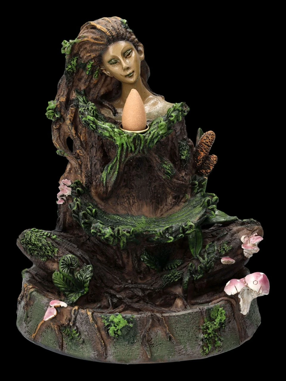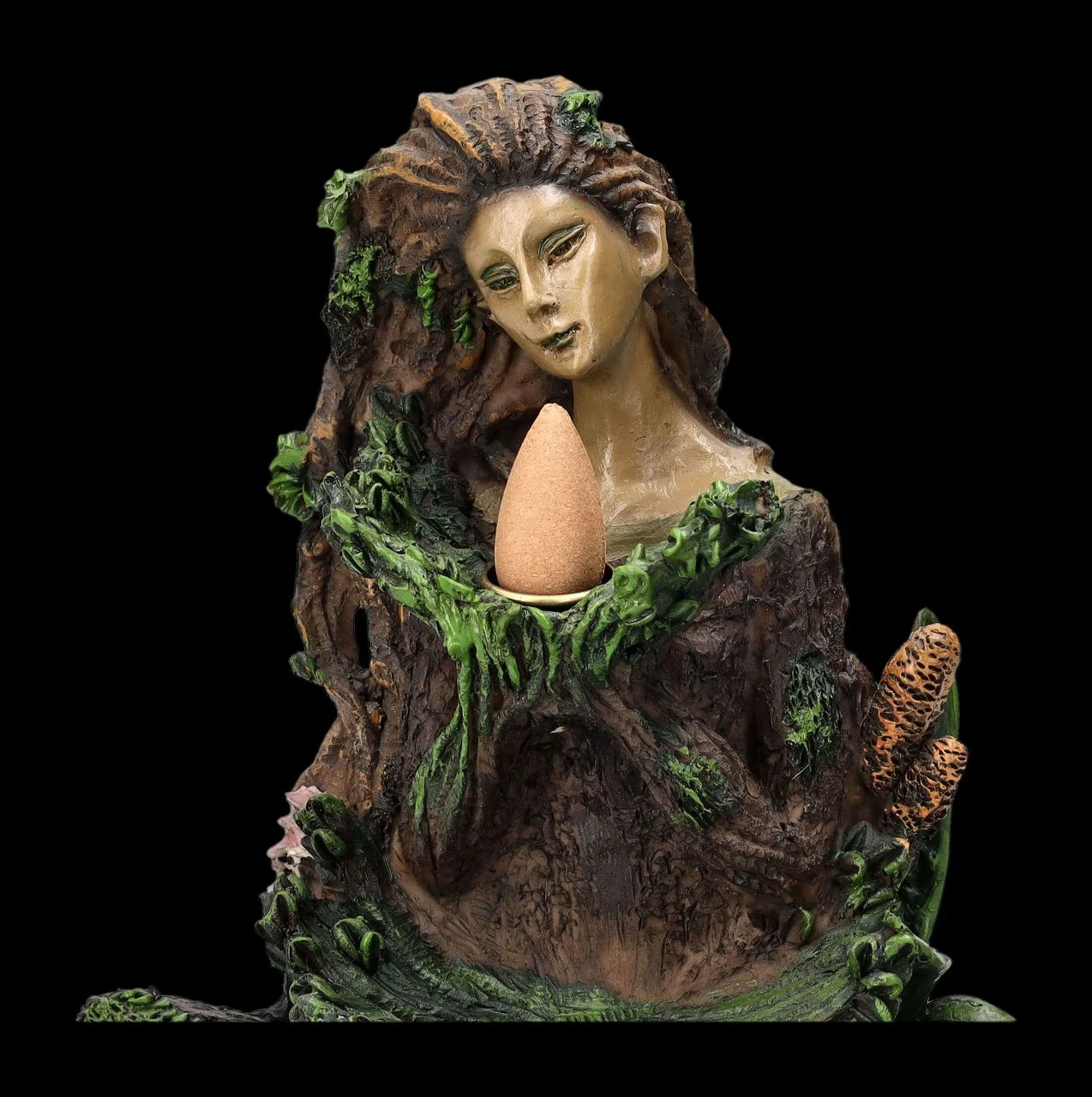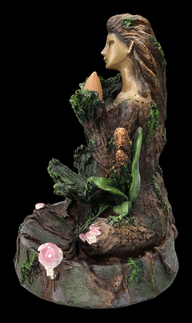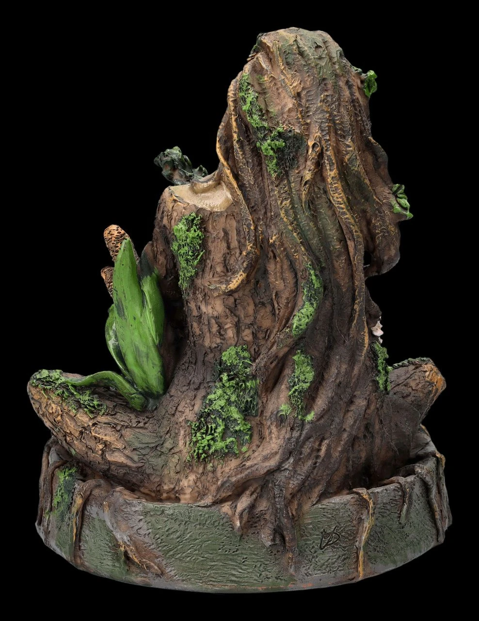 Höchst romantisch – wie eine wunderschöne Jugendstil-Figur – ist dieser faszinierende Backflow Räucherhalter mit der Baum Ent Lady. Aufmerksam beobachtet die mystische Lady den Weg des magischen Rauches, wenn der Backflow Räucherkegel, den sie in den Händen hält, angezündet wird. Der 19,5 cm hohe, 16,5 cm breite und 13 cm tiefe Backflow Räucherhalter wurde außerordentlich detailreich aus Kunststein (Polyresin) gefertigt und liebevoll handbemalt. Dieser fantastische Backflow Räucherhalter mit der mystischen Baum Ent Lady ist nicht nur sehr dekorativ, er ist auch ein wunderbares Geschenk für alle Freunde magischer Fabelwesen. Er ist nur für Backflow Räucherkegel geeignet, von denen einer beigefügt ist. Weitere Räucherkegel finden Sie in unserem Shop. Bitte beachten Sie unsere Sicherheitshinweise zu unseren Backflow Räucherhaltern.