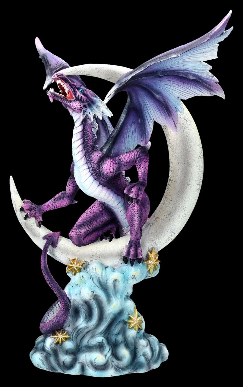 Erstaunliche Drachenfigur Bathor auf Halbmond – Symbol der Stärke und Macht