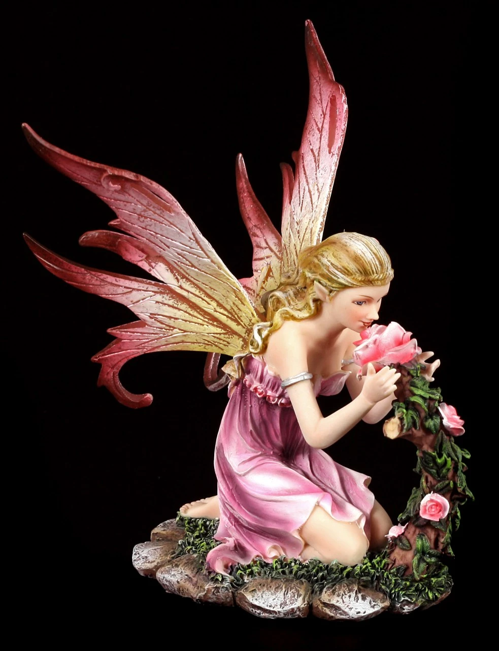 Rosanna hat sich freudig einer Rose zugewandt und riecht an einer Rosenblüte. Sie liebt den süßen Duft von Rosen. Diese wunderbare Elfenstatue bringt ein wenig Farbe in eine Sammlung.