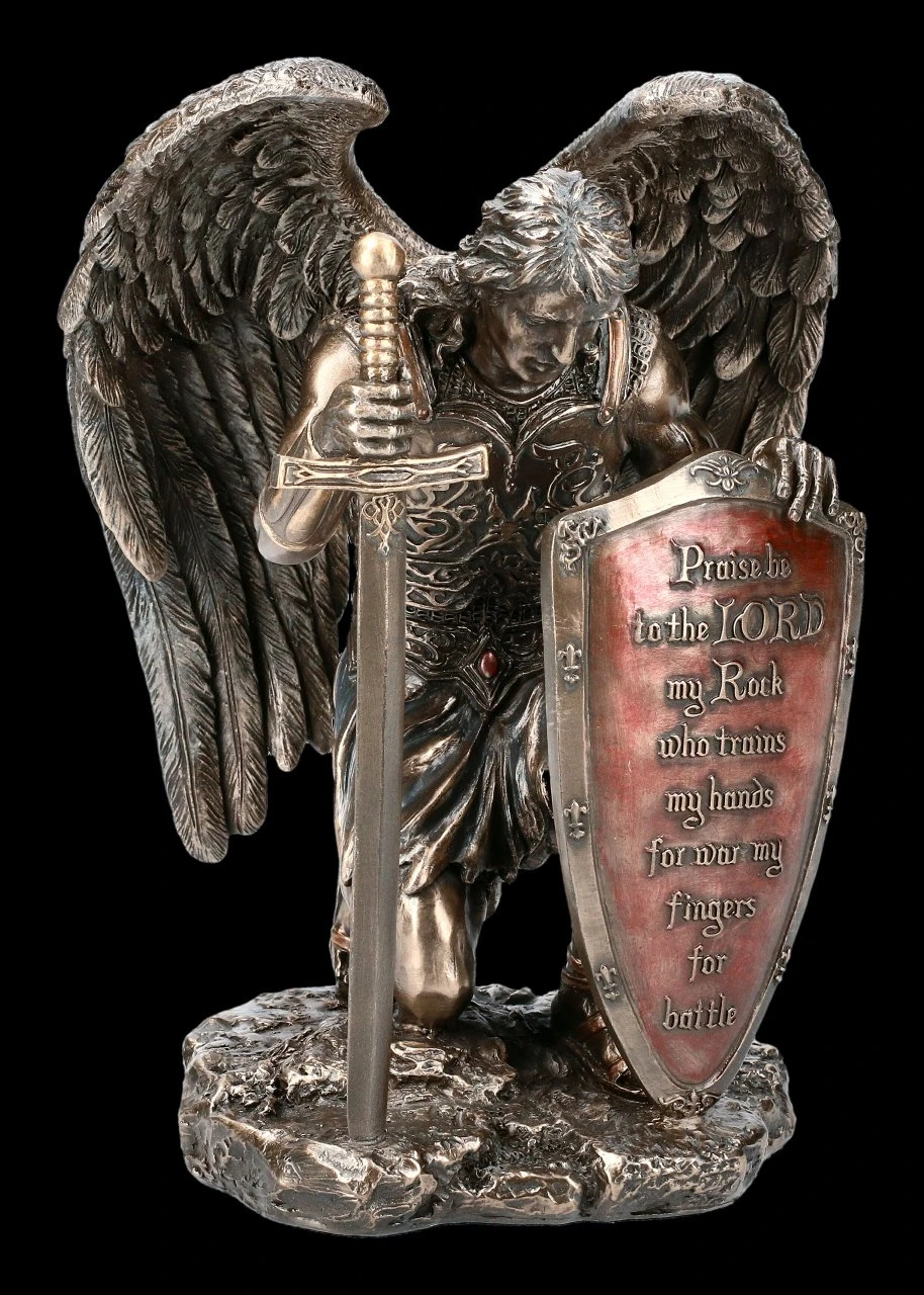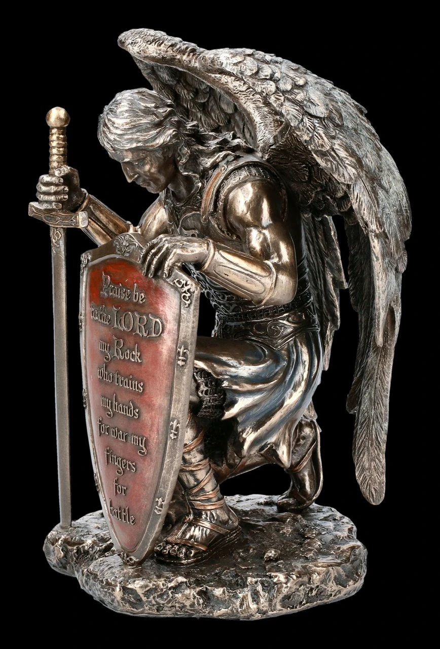 Der Ritter Engel kniet nach der Schlacht nieder und hält Rücksprache mit seinem Herrn. Er huldigt seinem Herrn und bedankt sich für seine Stärke.