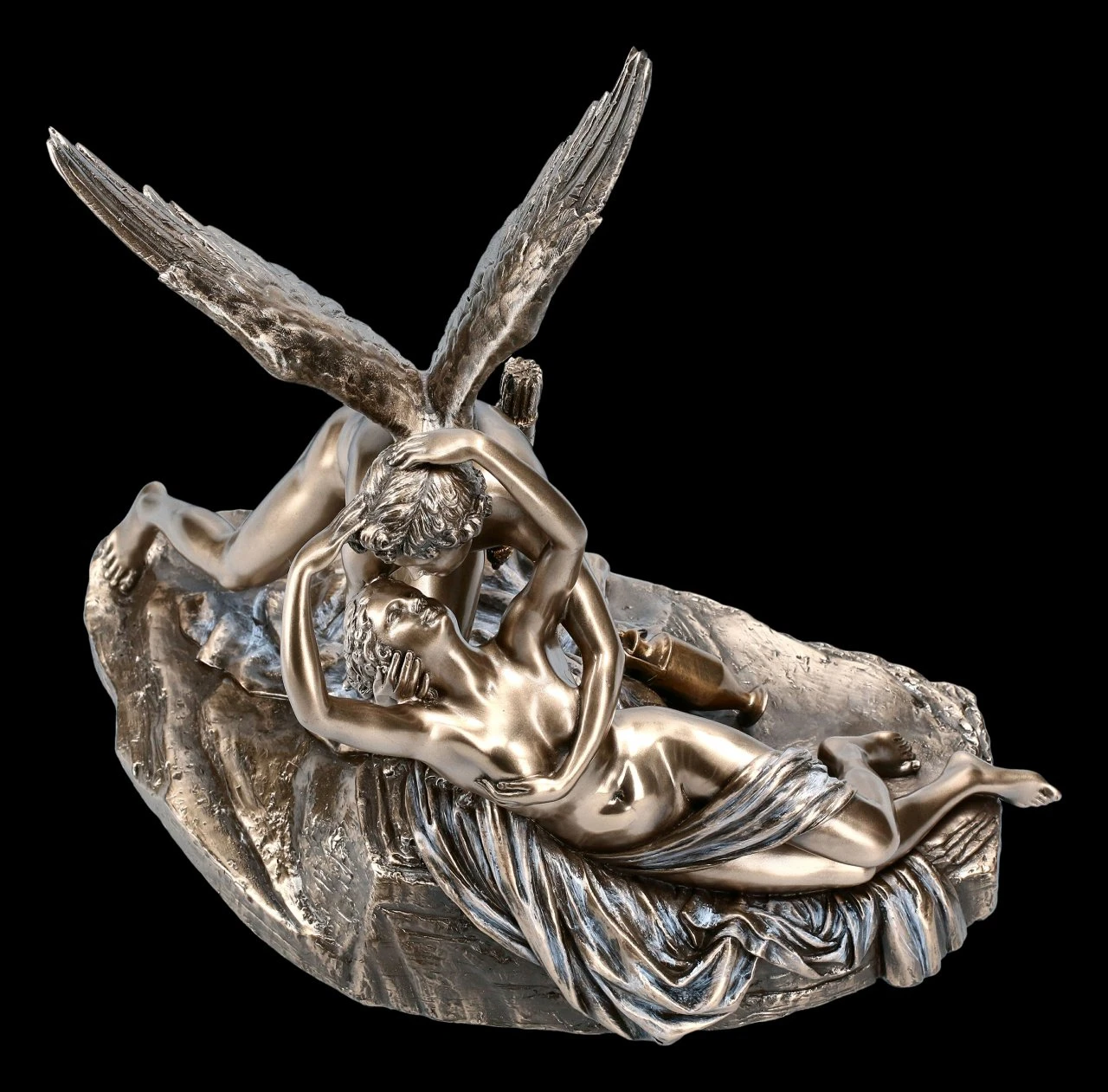 Antonio Canovas berühmte Marmorskulptur ‚Amor und Psyche‘ soll darstellen, wie Psyche durch den Kuss des Eros oder Amor wieder zum Leben erweckt wird. Die bereits seit der Entstehung berühmte sinnliche Marmorskulptur wird in der Studio Collection von Veronese edel bronziert und coloriert sehr eindrucksvoll aus Kunststein (Polyresin) wiedergegeben. Sie ist 27,5 cm hoch, 30 cm breit und 18,5 cm tief und ein überaus stilvoller Blickfang in jedem Wohn- oder Arbeitsbereich. Diese edle Figur ist aber auch ein sehr schönes und sinniches Geschenk.