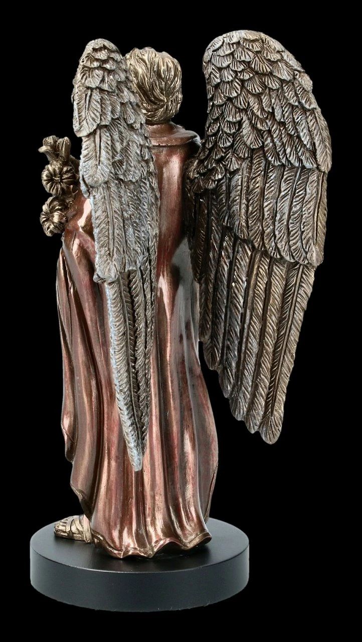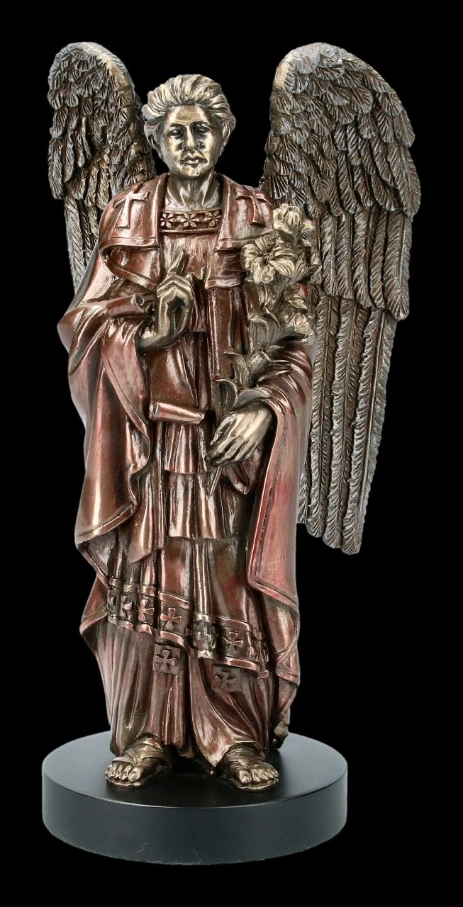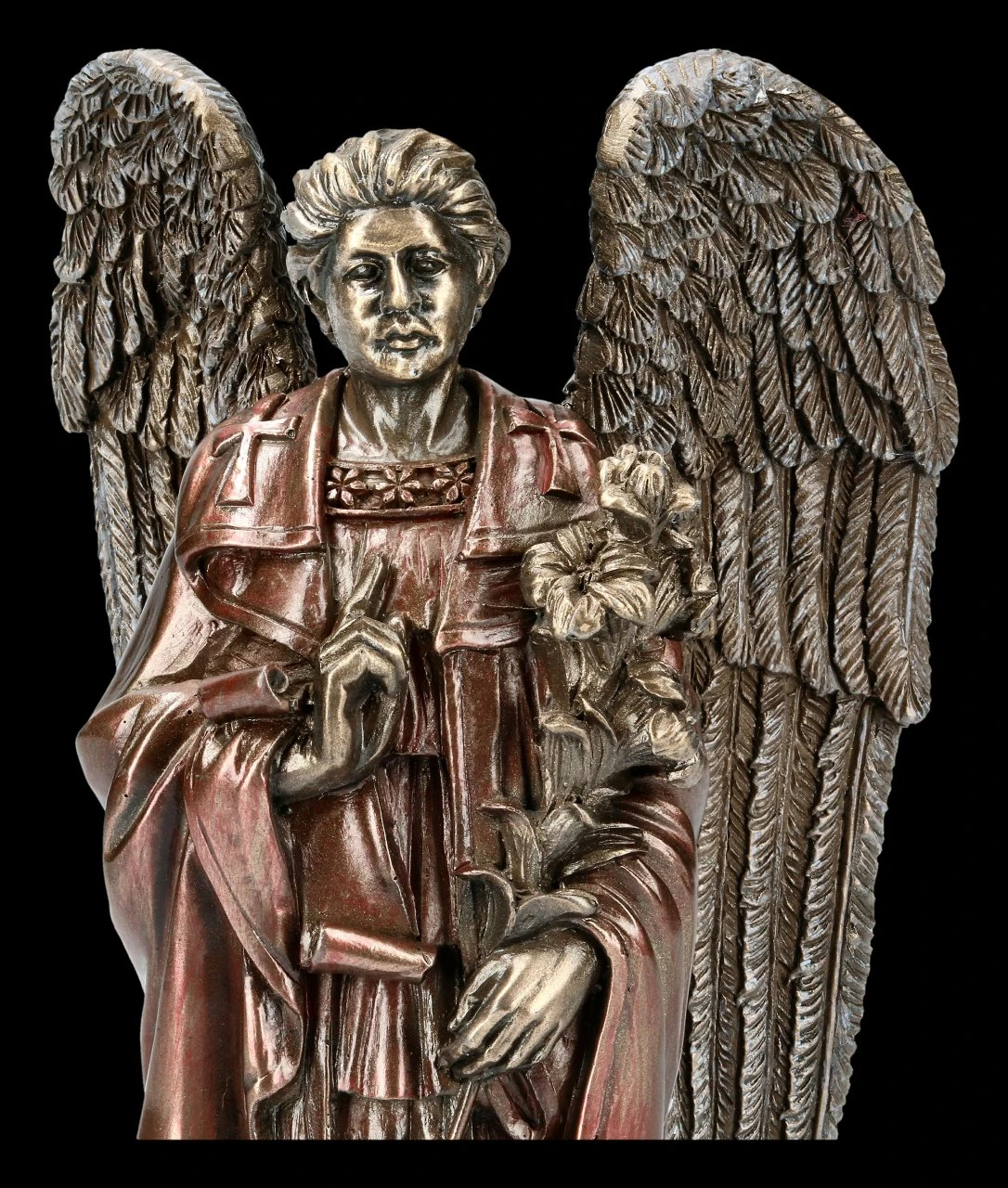 Der Erzengel Gabriel ist der Engel der Verkündigung der Geburt Jesu. Sein Name bedeutet Macht oder Kraft Gottes. Er gilt als Lichtwesen und er ist der Botschafter der Hoffnung. Diese wunderschöne und außerordentlich detailreiche Figur des Erzengel Gabriel auf dem Podest ist aus edel bronziertem Kunststein (Polyresin) gefertigt. Die Figur hat eine Höhe von 20,5 cm, eine Breite von 10 cm und eine Tiefe von 10 cm. Sie lässt sich auch sehr gut mit den anderen Erzengelfiguren aus unserem Shop zu einer effektvollen Gruppe zusammenstellen, die überall ein besonderer Blickfang sein wird.