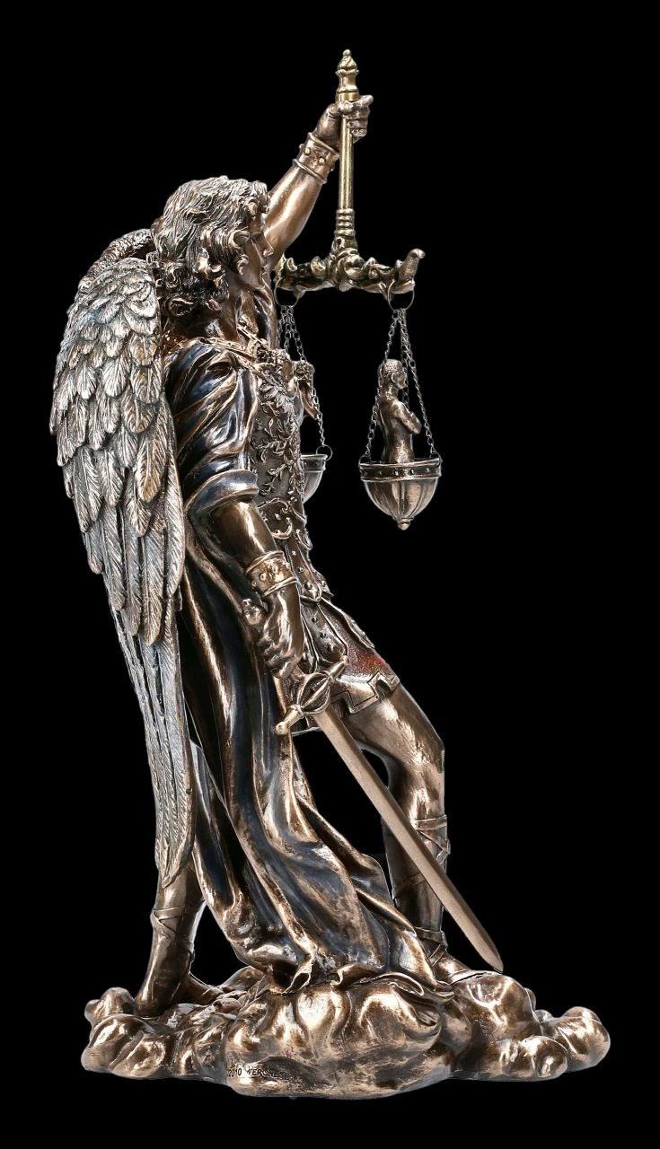 Die edle Darstellung aus der Serie ‚Studio Collection‘ von Veronese zeigt den Erzengel Michael, wie er am Tag des Jüngsten Gerichts die Seelenwaage hoch hält. In einer der Waagschalen ist der Teufel zu sehen und in der anderen eine reuige Figur. Mit den detailliert gestalteten Flügeln, dem Schwert und der Waage zum Anschrauben, ist der Erzengel Michael aus edel bronziertem und coloriertem Kunststein (Polyresin) außerordentlich detailreich dargestellt. Die im Gewand eines antiken römischen Helden edel mit Goldakzenten dargestellte Figur des Erzengel Michael ist 29 cm hoch, 13 cm breit und 15 cm tief und ist sicher ein besonderes Accessoire für den Schreibtisch oder das Regal in jedem Wohn- oder Arbeitsbereich.