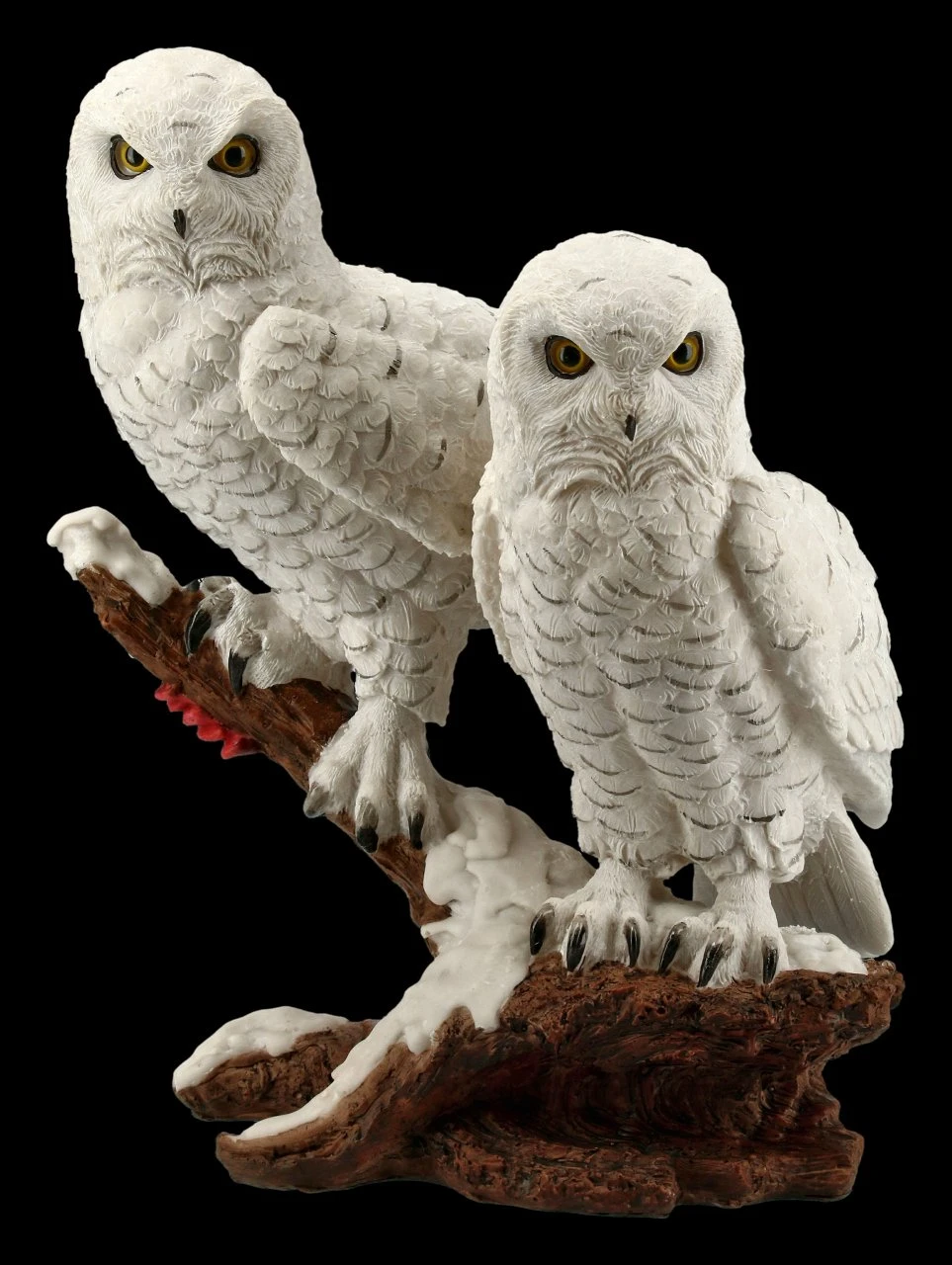 Jeder Betrachter wird sich völlig beeindruckt diesem fantastischen Schneeeulen Paar auf dem Ast nähern. Dieses wunderschöne Schneeeulen Paar, das so unglaublich natürlich aussieht, ist eine märchenhaft schöne Dekoration und ein wundervoller Blickfang. Die außerordentlich detailreich aus Kunststein (Polyresin) gefertigten Schneeeulen sind mit viel Liebe zum Detail von Hand bemalt. Mit der Höhe von 32 cm, der Breite von 24,5 cm und der Tiefe von 19 cm werden sie jeden Ihrer Besucher in Erstaunen versetzen.