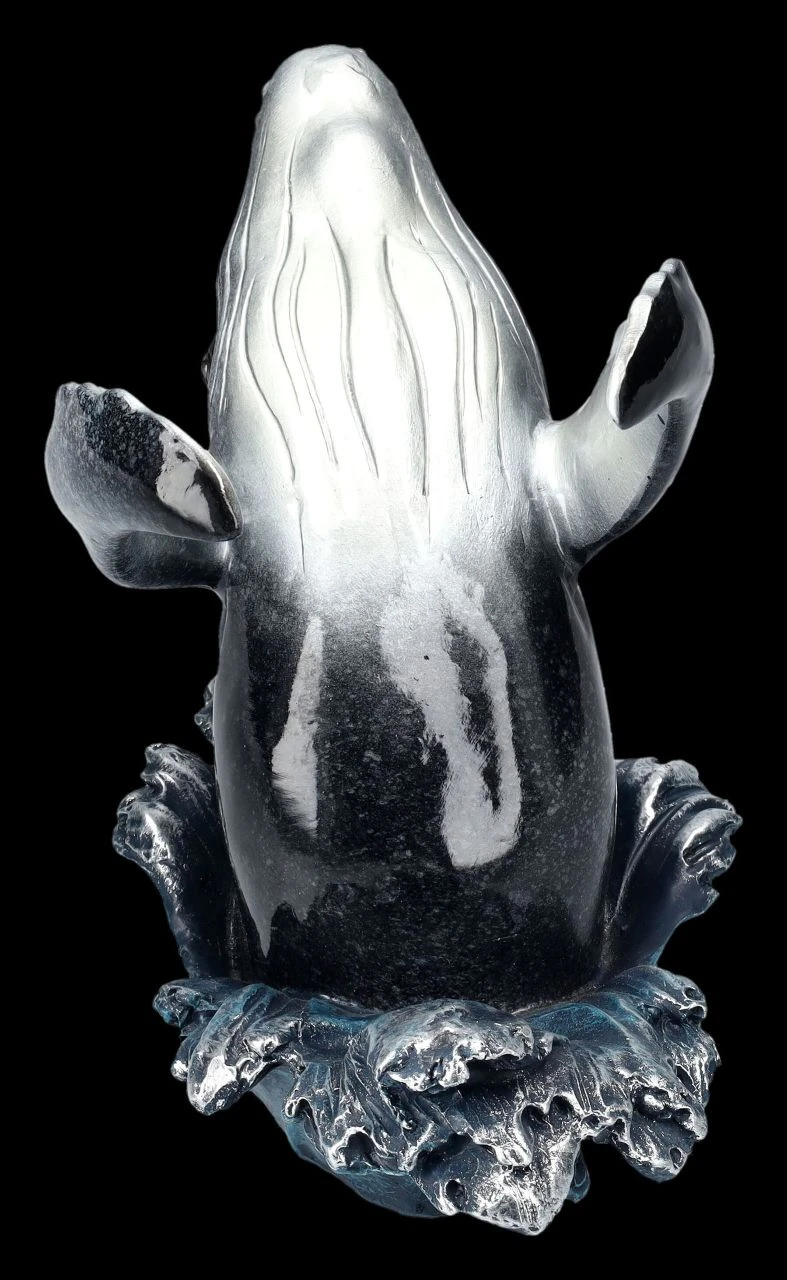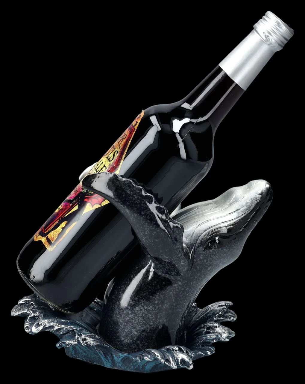 Buckelwale halten sich oft in Küstennähe auf – ob dieser Buckelwal dann die Flasche als Flaschenpost überbringt? Der 16 cm hohe, 22 cm breite und 13 cm tiefe Buckelwal aus hochwertigem Kunststein (Polyresin) wurde liebevoll von Hand bemalt. Er kann Flaschen mit einem Durchmesser bis ca. 7,5 cm perfekt halten. Dieser faszinierende Flaschenhalter wird zum dekorativen Blickfang auf dem Esstisch oder auch in der Bar. Er ist aber auch – vielleicht gleich mit dem passenden Getränk – ein fantasievolles Geschenk. Die Flasche aus unserer Dekoration ist nicht in der Lieferung enthalten.