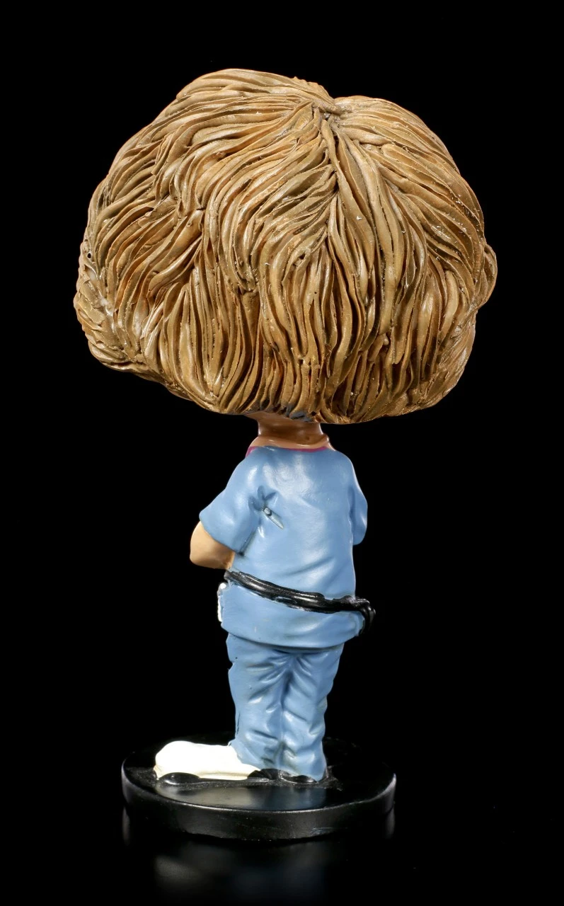 Mit wissender Miene nickt die Krankenschwester und schüttelt erst nach einem Gespräch mit dem Arzt den Kopf. Die Funny Job Figur einer Krankenschwester aus liebevoll handbemaltem Kunststein (Polyresin) ist mit ihrem lustigen Wackelkopf eine amüsante Hommage an die Pflegekräfte.
