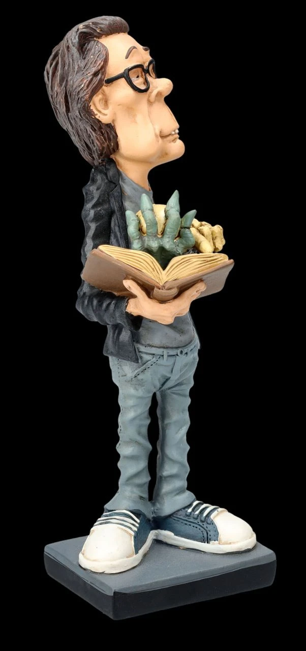 Zahlreiche seiner Horrorromane hat er auch erfolgreich verfilmt – Gruseleffekt garantiert. Der Künstler Warren Stratford hat den Charakter des ultimativen King of Horror perfekt eingefangen. Jede Figur wird von Warren Stratford, der jeden mit seinen humorvollen Karikaturen begeistert, in aufwändiger Handarbeit persönlich entworfen und dann aus liebevoll handbemaltem Kunststein (Polyresin) hergestellt. Die 18 cm hohe, 6 cm breite und 5 cm tiefe Figur gehört einfach in jede Sammlung und ist daher für alle Fans des Horrors ein perfektes Geschenk. Auch zahlreiche weitere witzige Karikaturen von Warren Stratford sind in unserem Shop zu finden.
