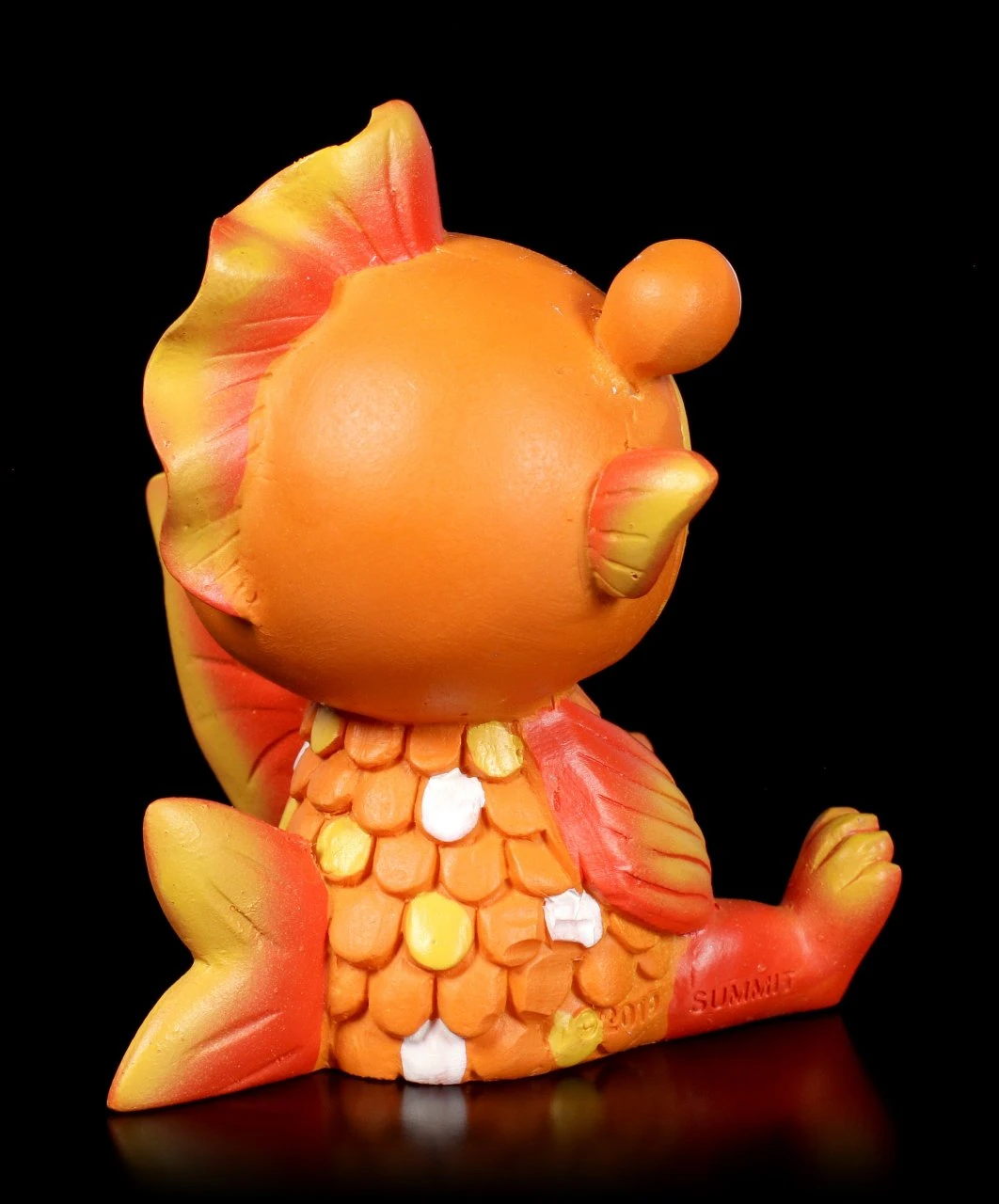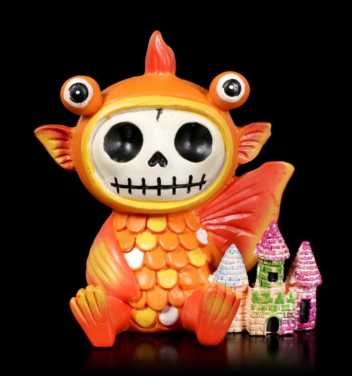 Blubb, Blubb, Blubb… Der kleine Furrybone liebt Fische und heute wollte er ihnen so nah wie möglich sein und hat sich als Goldfisch verkleidet. Sieht er nicht toll aus? Die niedliche Furrybones Figur ist aus Kunststein und wurde liebevoll und farbenprächtig handbemalt.