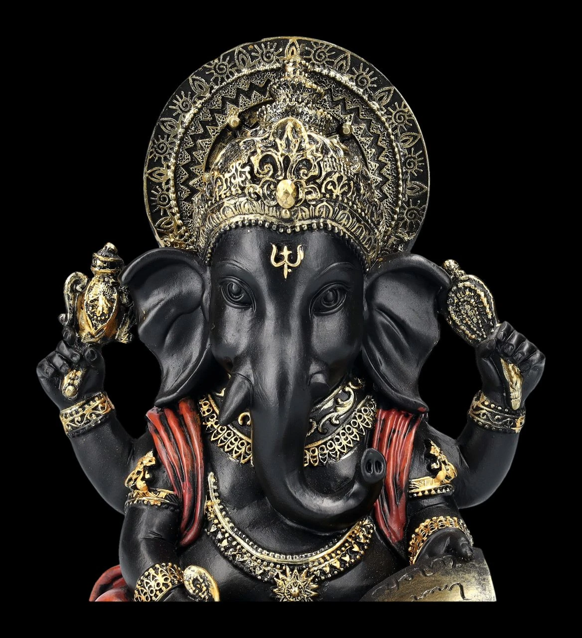 Die in dunklen Farben gehaltene Figur des Gottes Ganesha schreibt konzentriert seine Weisheiten in ein Buch. Die fantastische und sehr schön handbemalte Ganesha-Figur ist 20,5 cm hoch, 15 cm breit und 12 cm tief. Sie wurde aus sorgfältig und detailreich handbemaltem Kunststein (Polyresin) gefertigt und bringt asiatisches Feeling in jeden Bereich. Ganesha, der Gott mit dem Menschenkörper und dem Elefantenkopf ist nicht nur im Hinduismus und Buddhismus außerordentlich beliebt. Er gilt als Symbol für eine leicht zugängliche Energie, für das Genießen der schönen Seiten des Lebens und eine lebenspraktische Weisheit und ist als Gott der Weisheit, der Wissenschaften und der Künste in Asien auch für Schulkinder von großer Bedeutung. Diese wunderbare Figur des Gottes Ganesha ist auch als Glücksbringer und als Symbol für lebenspraktische Weisheit ein perfektes Geschenk.