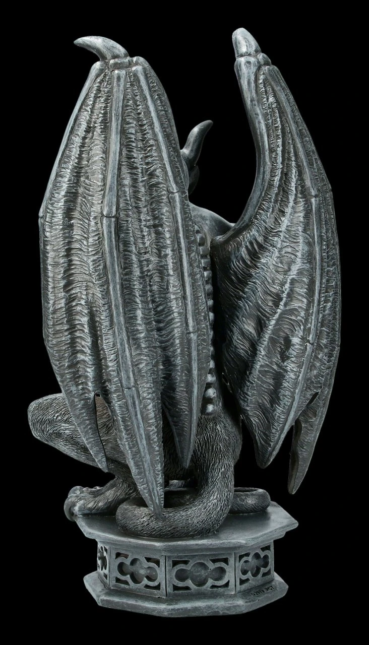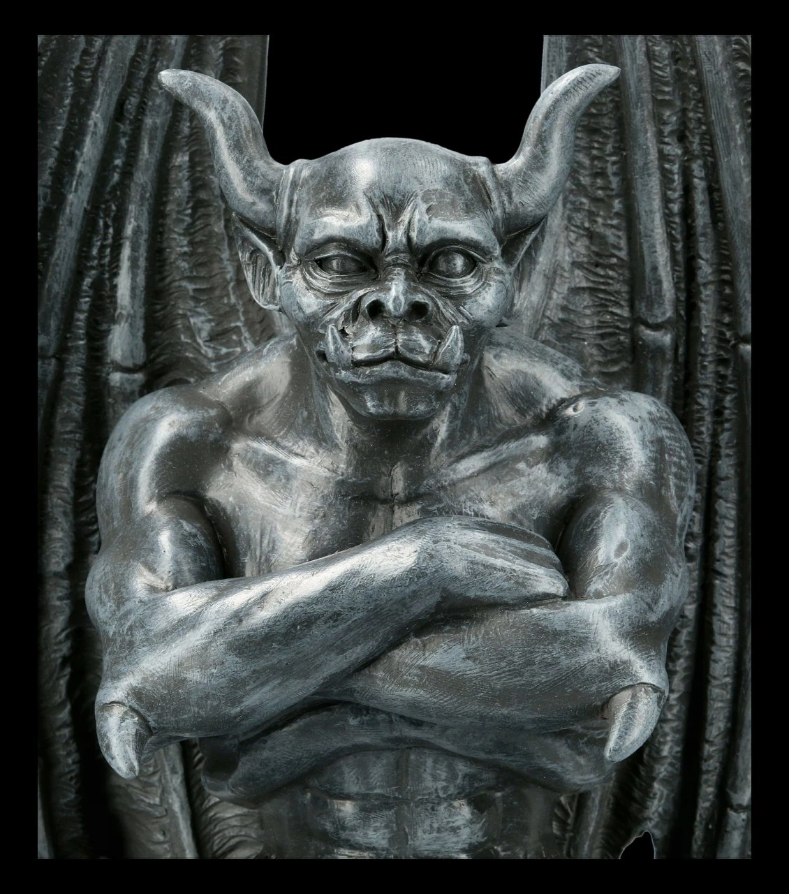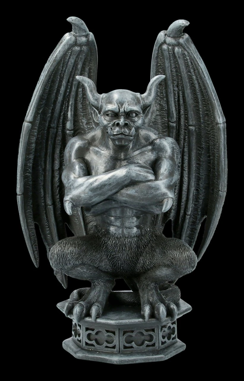 Durch ihr dämonisches Aussehen halten Gargoyles den bösen Mächten einen Spiegel vor und bewegen sie dadurch, in die Unterwelt zurück zu kehren. Damit schützen Gargoyles die Menschen und ihr Heim. Diese detailreiche, starke Gargoyle Figur aus handbemaltem Kunststein (Polyresin) ist mit der Höhe von 31,5 cm, der Breite von 19,5 cm und der Tiefe von 13 cm ein beeindruckender Beschützer Ihres Heimes. Stellen Sie diesen starken Gargoyle am besten in der Nähe Ihres Eingangs auf.