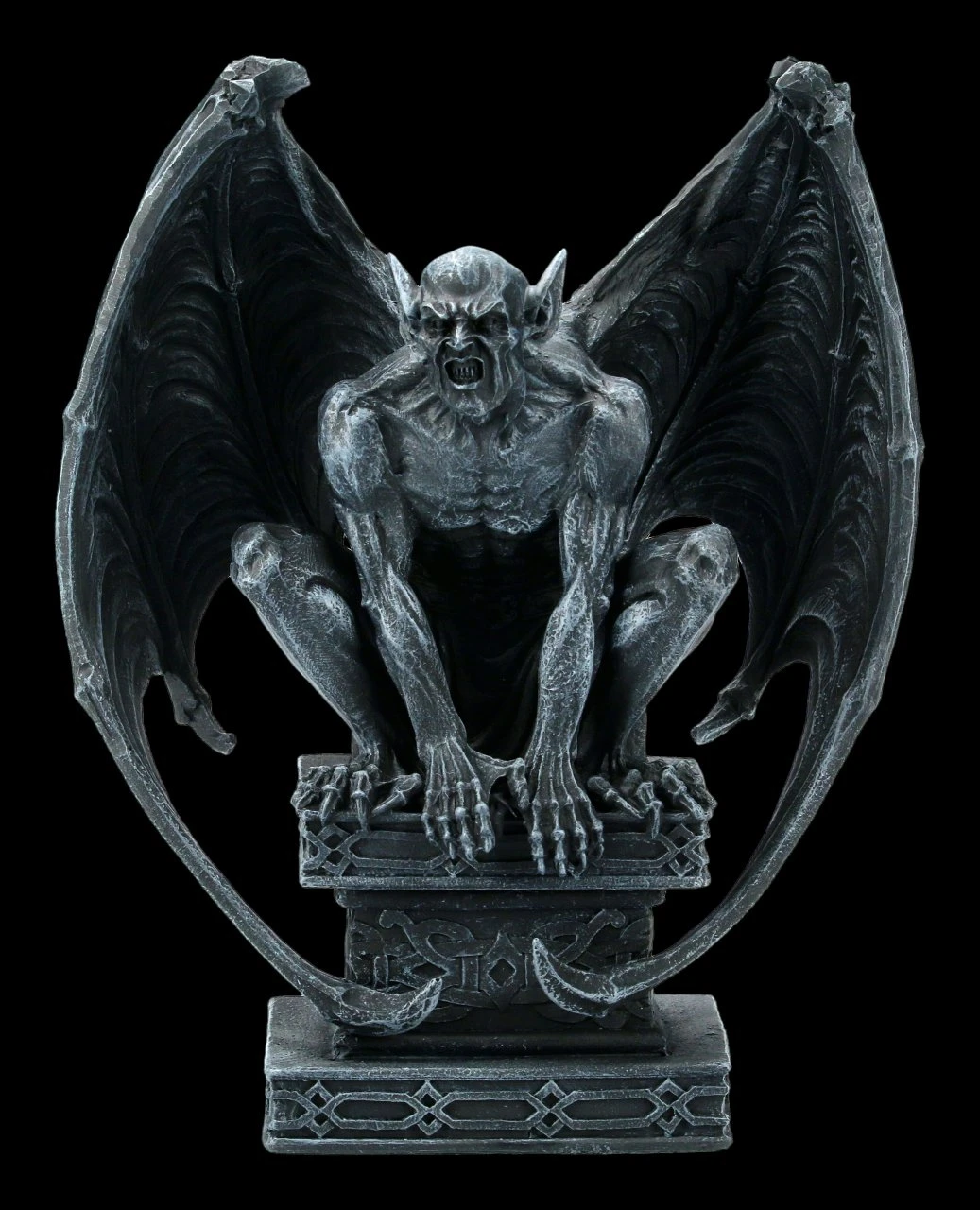 Tagsüber zu Stein erstarrt, erwachen Gargoyles in der Nacht zum Leben und verjagen das Böse. Der Wächter mit seinen großen Schwingen sitzt lauernd auf einem Sockel. Er ist sehr ausführlich und detailreich aus Kunststein (Polyresin) gefertigt und handbemalt. Mit seiner Höhe von 19 cm, der Breite von 15,5 cm und der Tiefe von 8,5 cm ist der Wächter mit seinen großen Flügeln eine wirklich faszinierende Gargoyle Figur. Im Eingangsbereich aufgestellt, wird er auch zum Beschützer Ihres Heimes.
