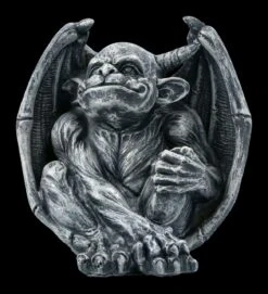 Lässig sitzt der gehörnte Gargoyle Victor irgendwo in Ihrem Eingangsbereich. Mitten im Gespräch mit Quasimodo erstarrt, wartet er auf die Nacht. Er ist der Vernünftige unter allen Gargoyles und versucht immer wieder zu schlichten. Der Gargoyle Victor wurde sorgfältig aus handbemaltem Kunststein (Polyresin) gefertigt. Mit einer Höhe von 13 cm, einer Breite von 12 cm und einer Tiefe 9 cm kann Victor zu Ihrem Schutz in der Nähe jeder Tür warten – auch wenn er selbst manchmal Angst bekommt und vielleicht von Ihnen geschützt werden muss.