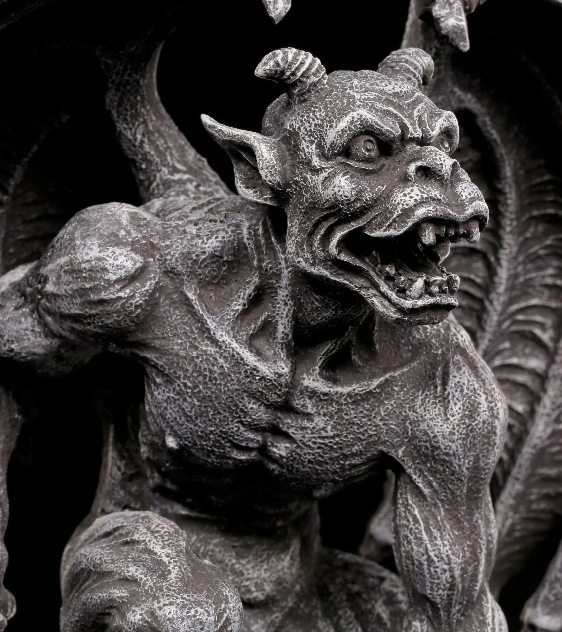 Der Gargoyle wartet auf die Nacht und auf seine Zeit. Erst da kann er sich von seiner Versteinerung befreien und durch die Dunkelheit streifen, um die Menschen vor dem Bösen zu schützen.