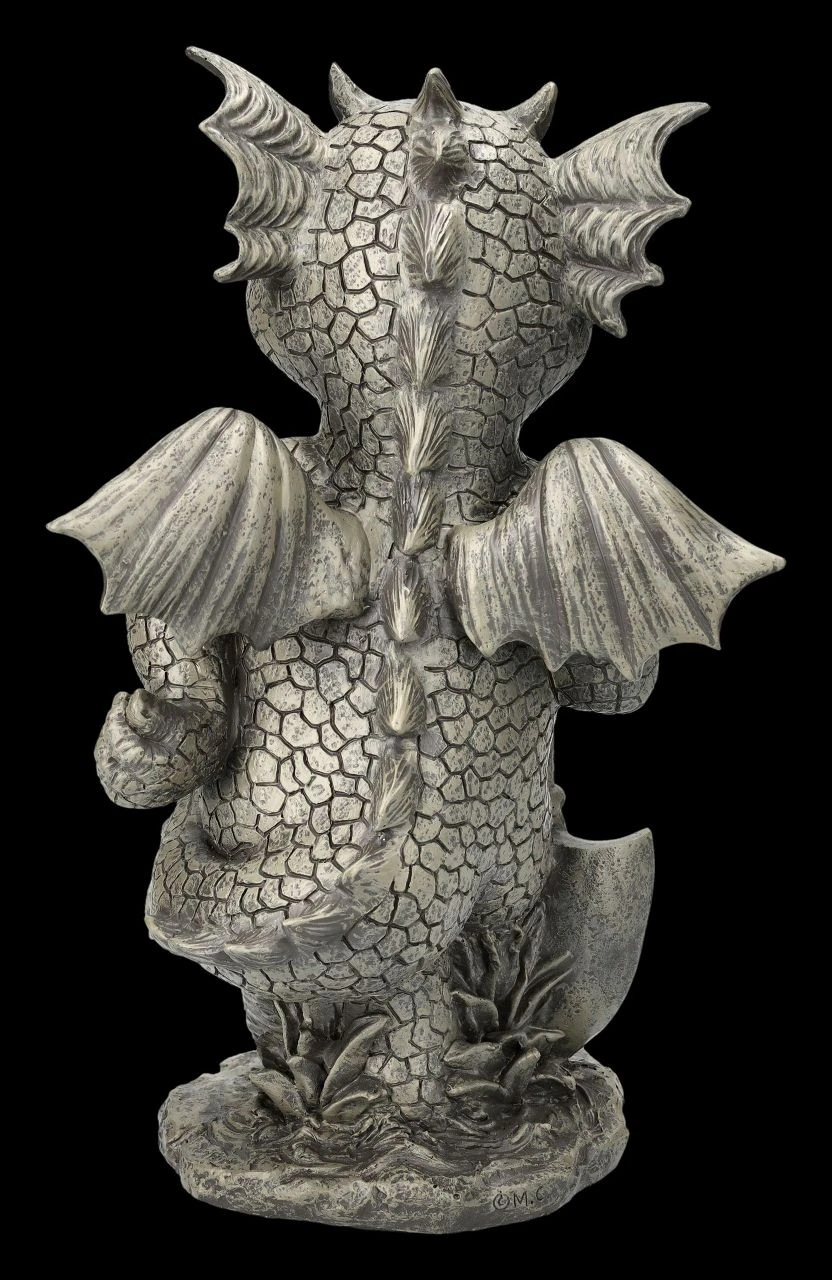 Gartenarbeit kann, wie man diesem lustigen Drachen ansieht, doch schon sehr anstrengend sein. Vielleicht hätte er zwischendurch etwas trinken sollen, dann würde ihm die Zunge nicht so heraushängen. Der 29,5 cm hohe, 17 cm breite und 13,5 cm tiefe Drache als Gärtner ist detailreich aus liebevoll handbemaltem Kunststein (Polyresin) gefertigt. Ob im Gartenbereich, der Terrasse, dem Balkon oder auch auf der Blumenbank im Wohnbereich – dieser niedlich Gärtner macht überall eine gute Figur.