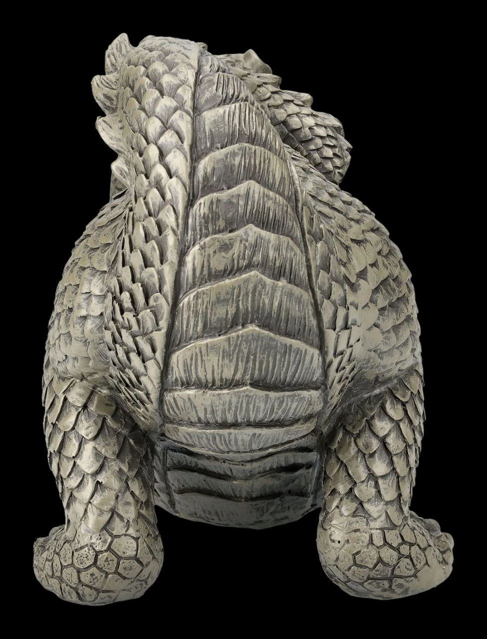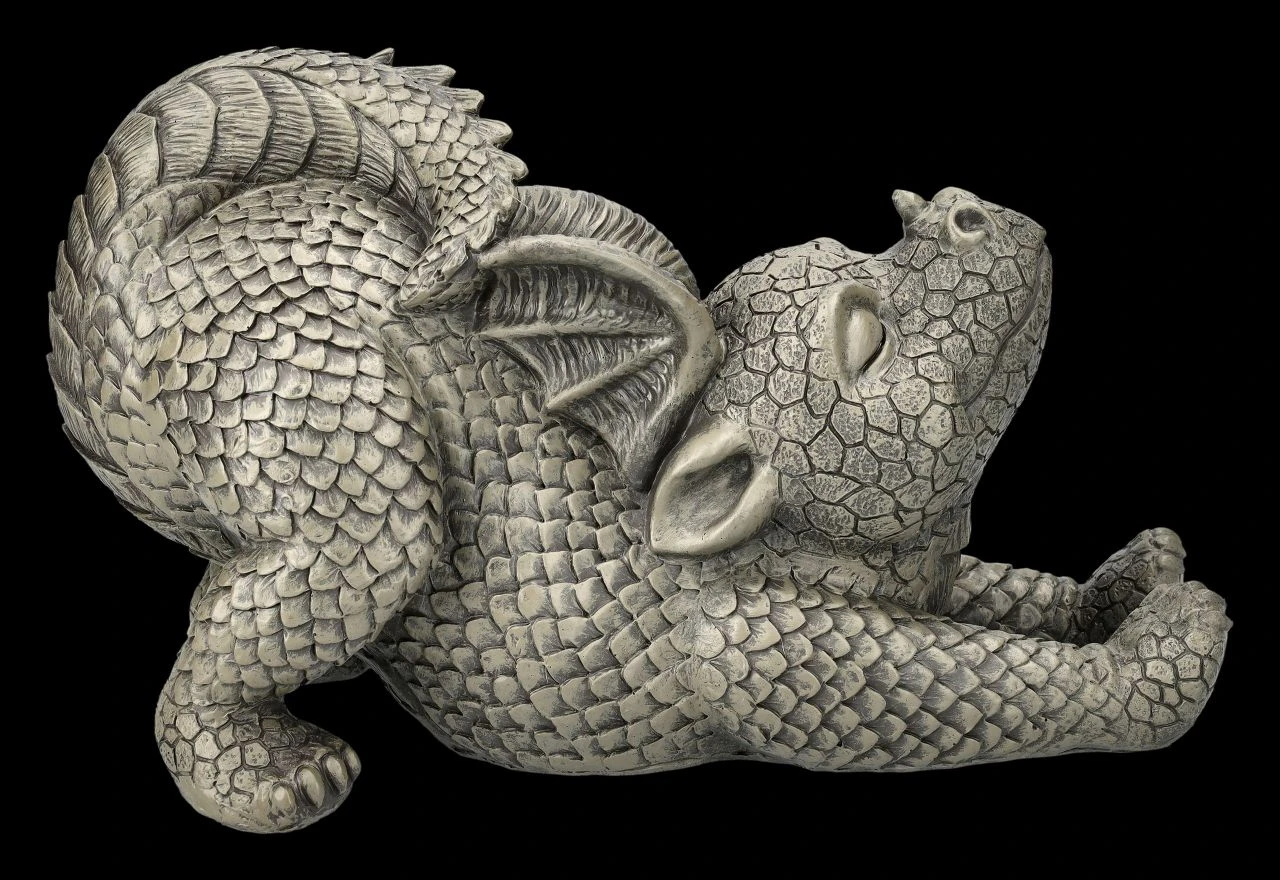 Uahh – genüsslich streckt sich der kleine Drache nach dem langen Schlaf. Dier niedliche Drache aus handbemaltem Kunststein (Polyresin) fühlt sich – wie man deutlich sieht – im Garten, auf der Terrasse oder dem Balkon, aber auch auf dem Fensterbrett in der Wohnung so richtig wohl.