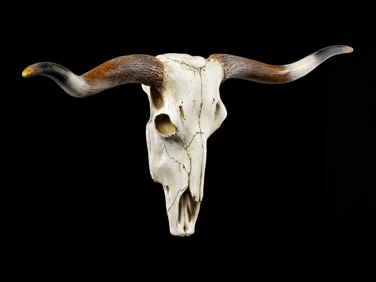Der handbemalte Büffel Schädel aus hochwertigem Kunststein (Polyresin) mit den langen geschwungenen Hörnern wirkt überaus realistisch. Nicht nur für jeden Western Fan ist dieser dekorative Schädel eine fantastische Wanddeko. Das 36 cm hohe, mit den Hörnern 88,5 cm breite und 14 cm tiefe Wandrelief besticht durch die vielen Details. Dieser fantastische Büffelschädel wird auch in jedem Westernsaloon zum sofortigen Blickfang.