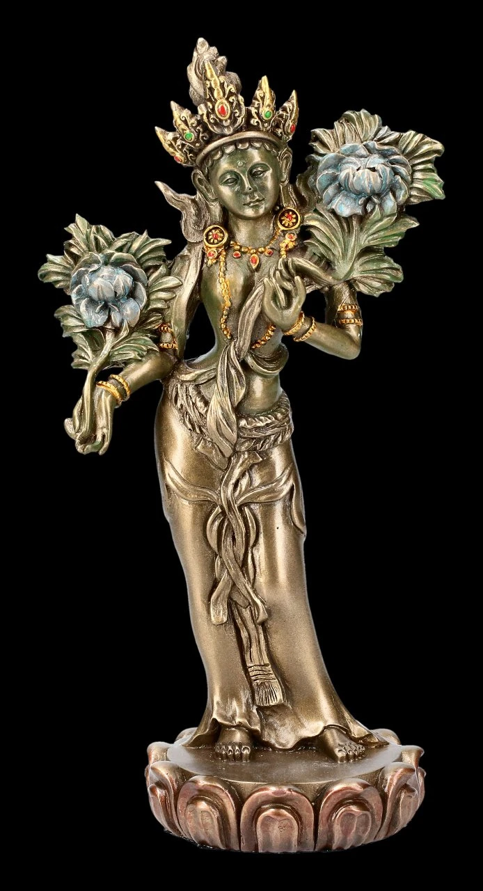 Die grüne Tara gilt als weiblicher friedlicher Buddha des tibetischen Buddhismus und ist die Hauptform im Mandala der 21 Taras, die jeweils verschiedene Facetten ihrer Buddha-Aktivität ausdrücken. Sie soll das aktive Mitgefühl aller Buddhas verkörpern und den Menschen vor den acht Arten der Angst schützen. Auch wird gesagt, dass sie die ursprüngliche Weisheit vermehrt und wird für ihre wunscherfüllenden Qualitäten gepriesen. Es wird ihr eine besondere Schnelligkeit bei der Erfüllung von Wünschen und dem Schutz vor Gefahren zugeschrieben.