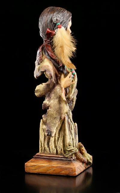 Freundlich blickt die Indianerin Aiyana (Ewige Blüte) in die Ferne. Am Sockel ihrer Büste liegen paar Gaben. Sie verzaubert jedes Zimmer und ist ein Muss für alle Indianer-Fans.