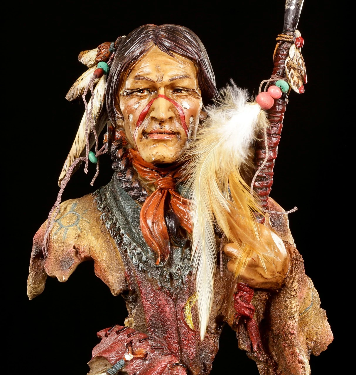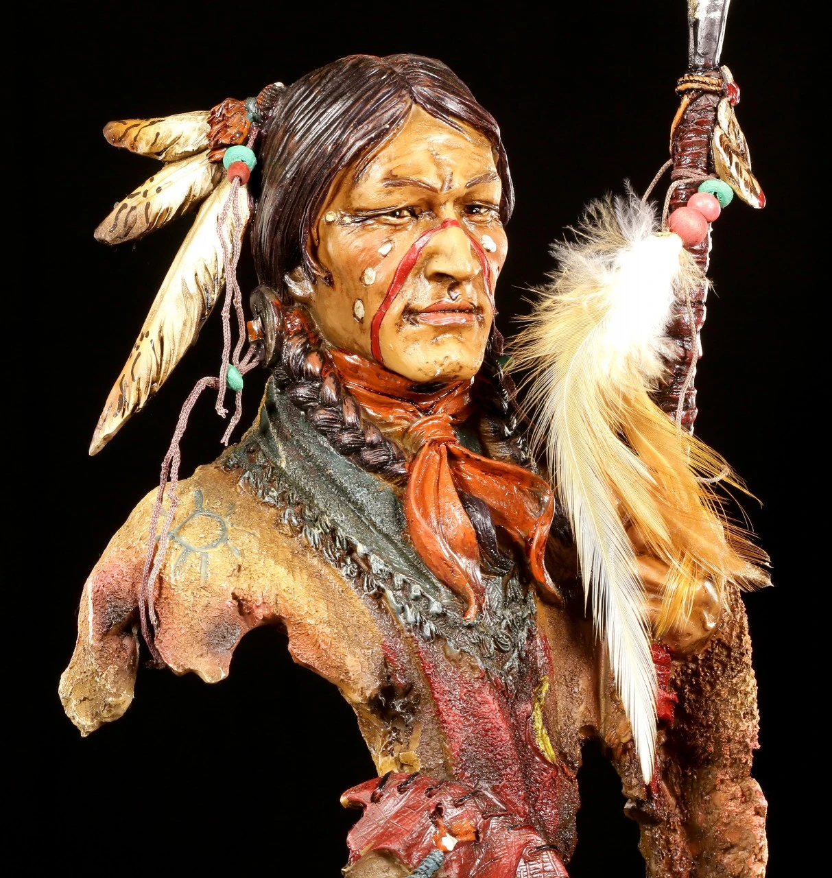 Möchten Sie ein Stück amerikanische Kultur zu sich nach Hause holen? Diese Büste eines indianischen Kriegers ist ein absolutes Highlight. Die Kriegsbemalung, der Federschmuck, alles an dieser Büste ist sehr detailreich und realistisch gearbeitet.
