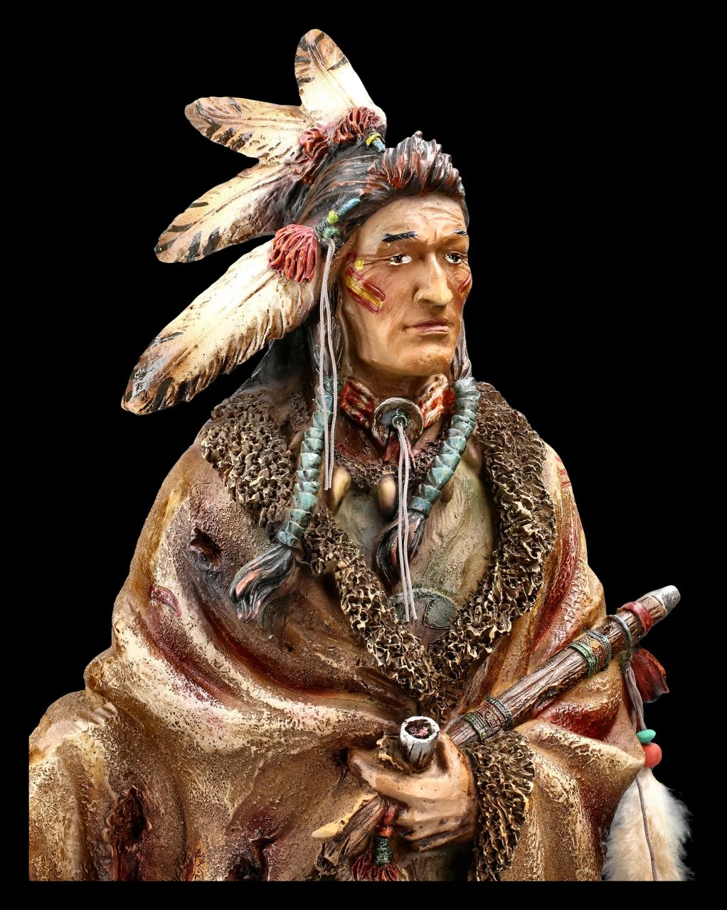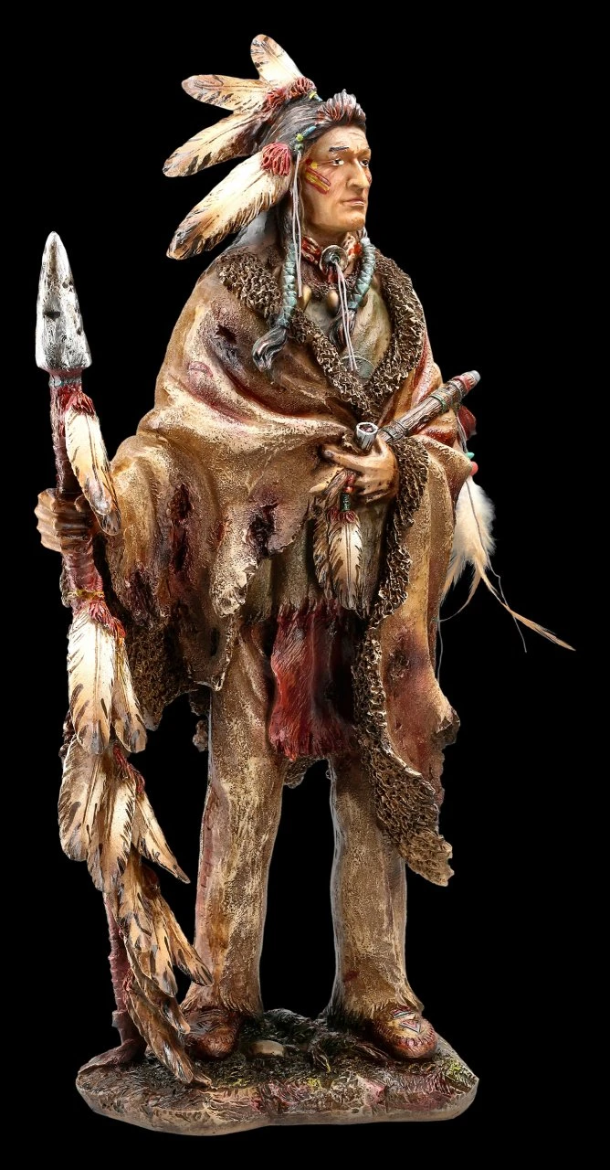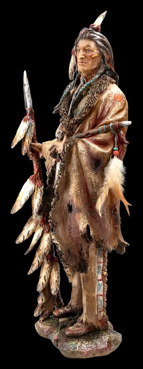 Diese Indianer Figur ist sehr detailgetreu gearbeitet. Der Speer, die Federn und das Fell in das sich der Krieger gekleidet hat – alles ist einfach stimmig und sehr realistisch gearbeitet.