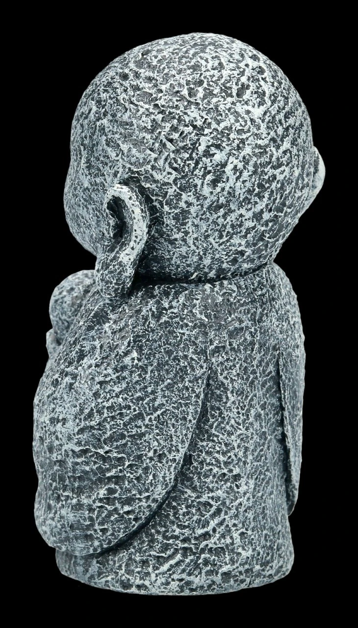 Die Jizo oder Kshitigarbha-Figuren gehören zu den populärsten Figuren Japans und werden oft mit einer Wunscherfüllungsperle dargestellt. Die kleine buddhistische Mönch-Figur mit der Perle sieht aus wie aus einem kleinen Stein gehauen und wirkt mit dem lächelnden Gesichtsausdruck sehr liebevoll. Die kleine Mönch-Figur ist 7,5 cm hoch, 4 cm breit und 4 cm tief. Sie ist aus sorgfältig handbemaltem Kunststein (Polyresin) gefertigt und passt sehr gut in einen kleinen Zen-Garten oder vor einen Glücksbambus.