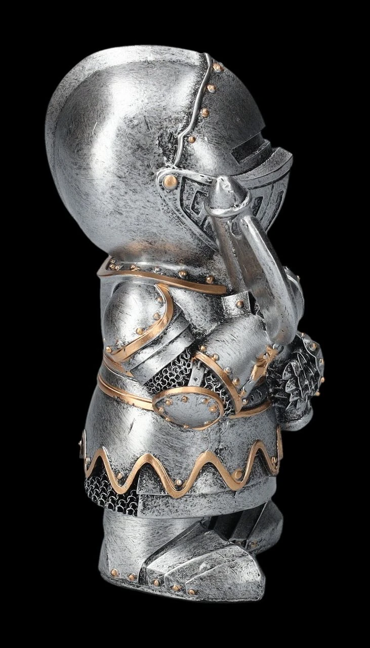 Ist er nicht niedlich, der kleine Ritter Sir Chopalot? Wenn er auch klein ist, so sieht er doch wie ein wahrer Ritter aus, oder nicht? Aus handbemaltem Kunststein (Polyresin) gefertigt, steht der 12,5 cm hohe, 7,5 cm breite und 5,5 cm tiefe witzige Kamerad für Ritter Fans aufrecht da. Sir Chopalot ist auch ein lustiges Geschenk für alle Ritter Fans.