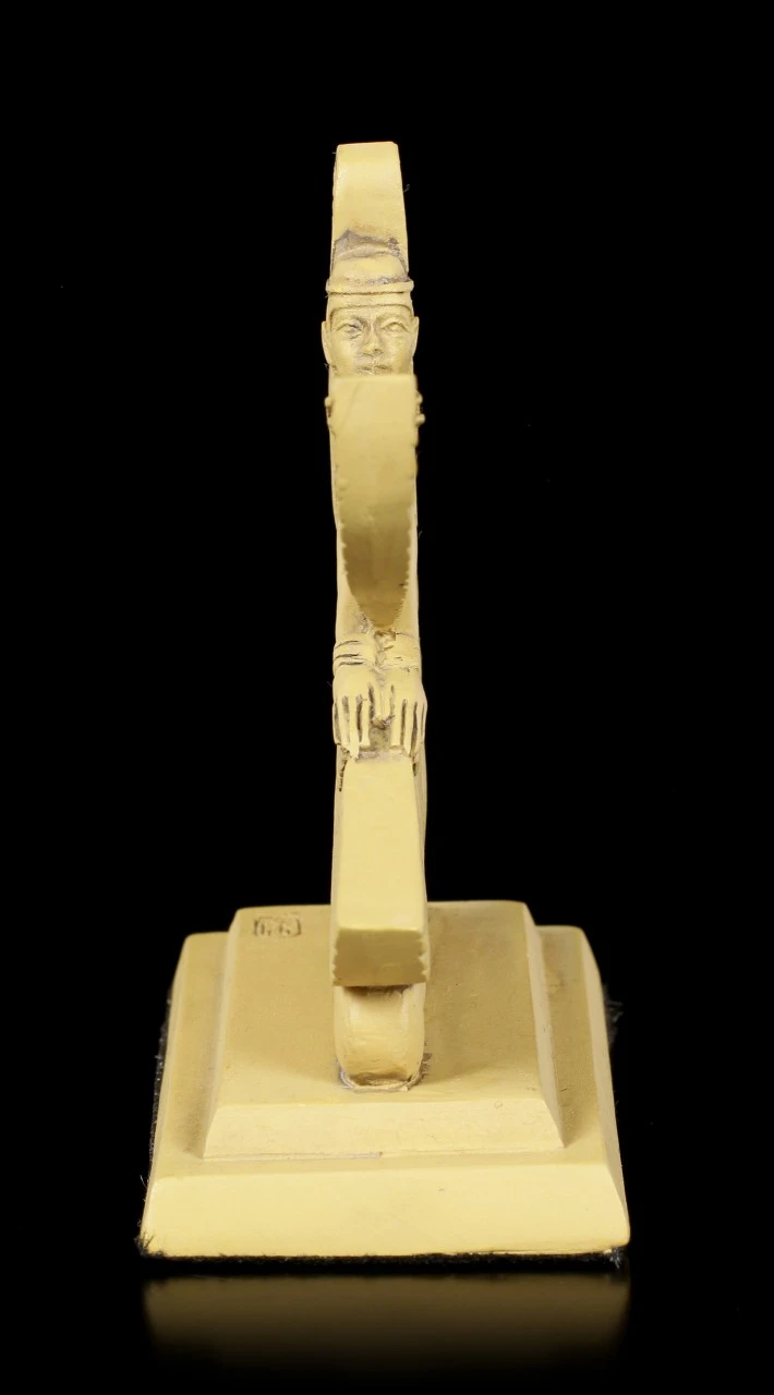 Die kleine Maat Figur zum Stellen ist in typischer Hieroglyphen Form dargestellt. Die sandfarbene Figur aus handbemaltem Kunststein (Polyresin) ist detailreich verarbeitet und gehört zur Serie Ancient Egypt. Maat war im alten Ägypten die geflügelte Göttin der Weisheit.