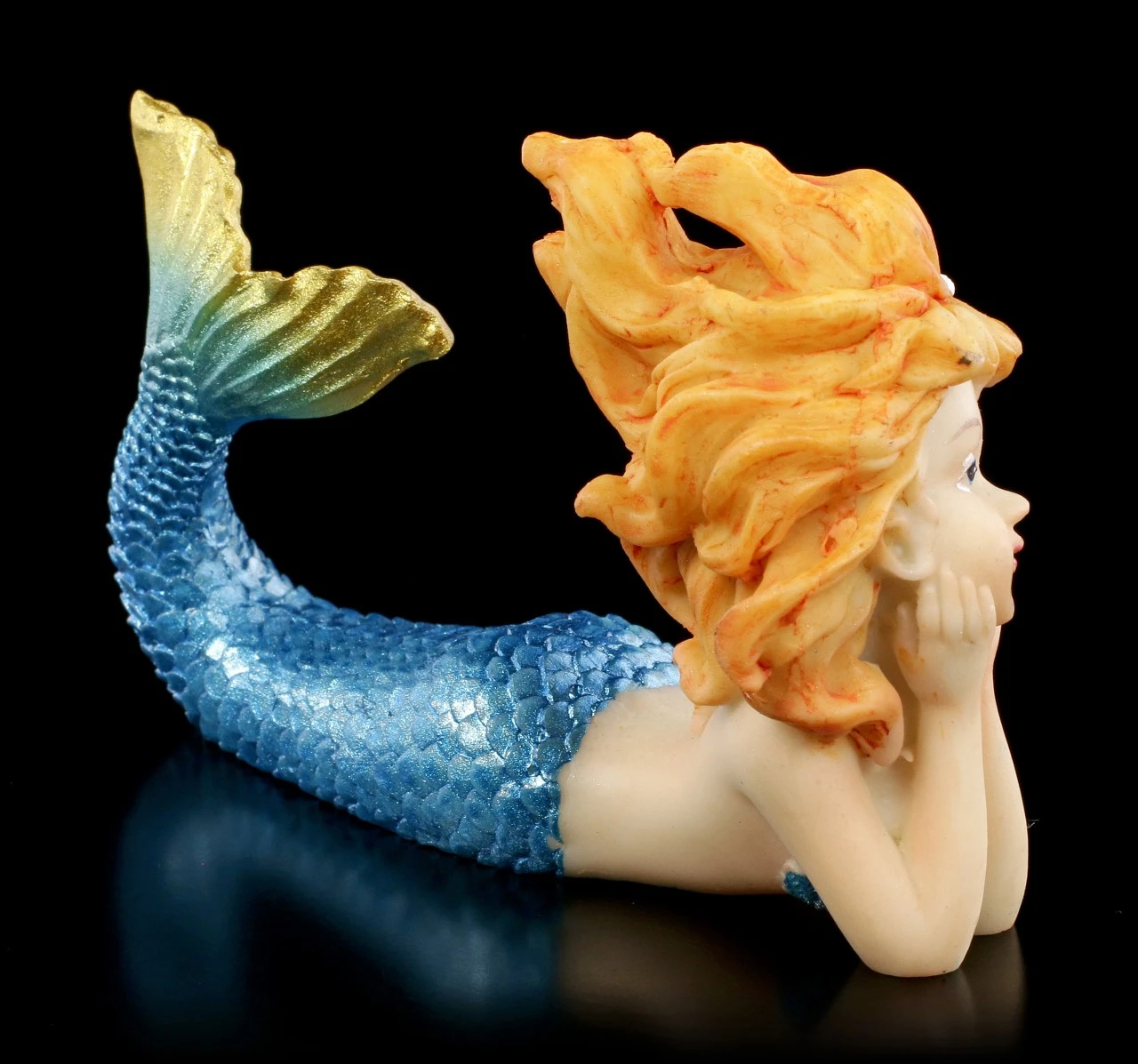 Die kleine Luana wartet am Meeresgrund liegend auf ihre Freunde. Ihre schönen Haare scheinen in der Meeresströmung zu wehen. Die Figur wurde liebevoll handbemalt und ausgearbeitet.