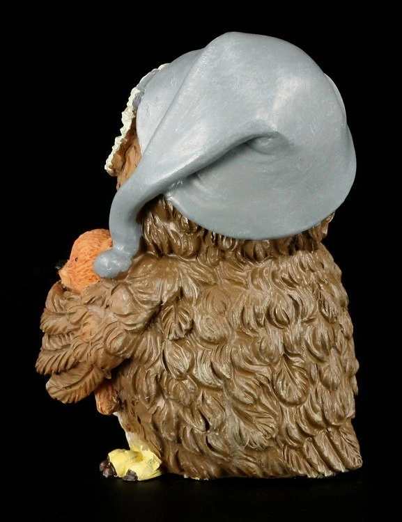 Schlaftrunken blickt die Eule aus fast geschlossenen Augen hervor. Sie trägt noch ihre Schlafmütze und freut sich bestimmt, wenn sie wieder schlafen gehen kann.