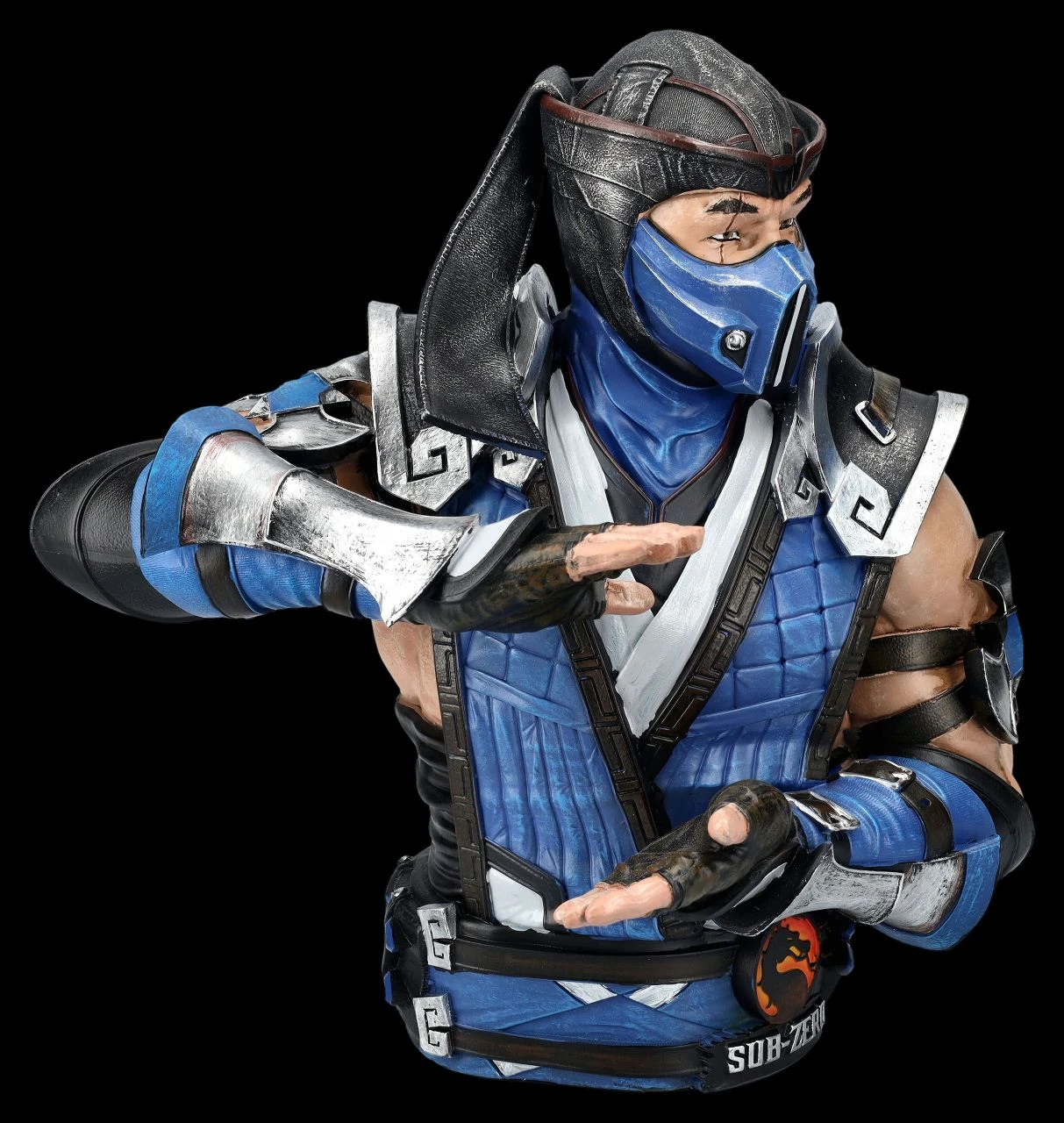Eine unglaubliche Deko und ein fantastisches Geschenk ist diese Sub-Zero-Büste von Mortal Kombat. Neben seinem Rivalen Scorpion ist Sub-Zero die absolute Hauptfigur der Mortal Kombat Serie. Die herrlich detailreiche Büste zeigt Sub-Zero, wie er sich gerade darauf konzentriert, seine unglaublichen und magischen Kryomanie-Kräfte zu entfesseln, um seine Feinde auszuschalten. Die 28 cm hohe, 27 cm breite und 19 cm tiefe Büste wurde außerordentlich detailreich aus hochwertigem Kunststein (Polyresin) gearbeitet und sorgfältig von Hand bemalt. Die fantastische und hochwertige Sub-Zero Büste ist ein offziziell lizenziertes Merchandise von Mortal Kombat und kommt inklusive einer toll bedruckten Geschenkbox. Sie ist ein sofortiger Blickfang und wird mit Sicherheit jeden Fan begeistern.