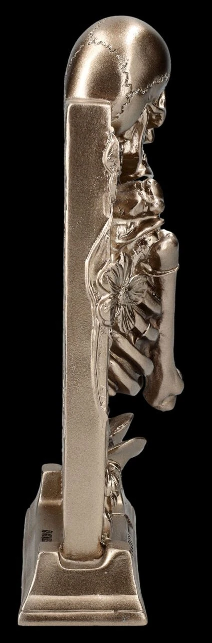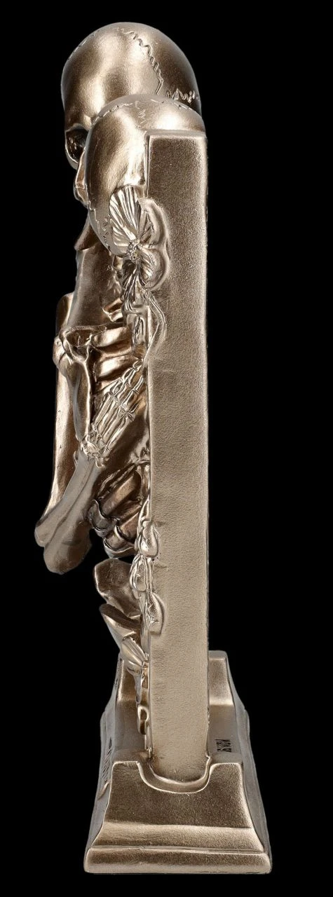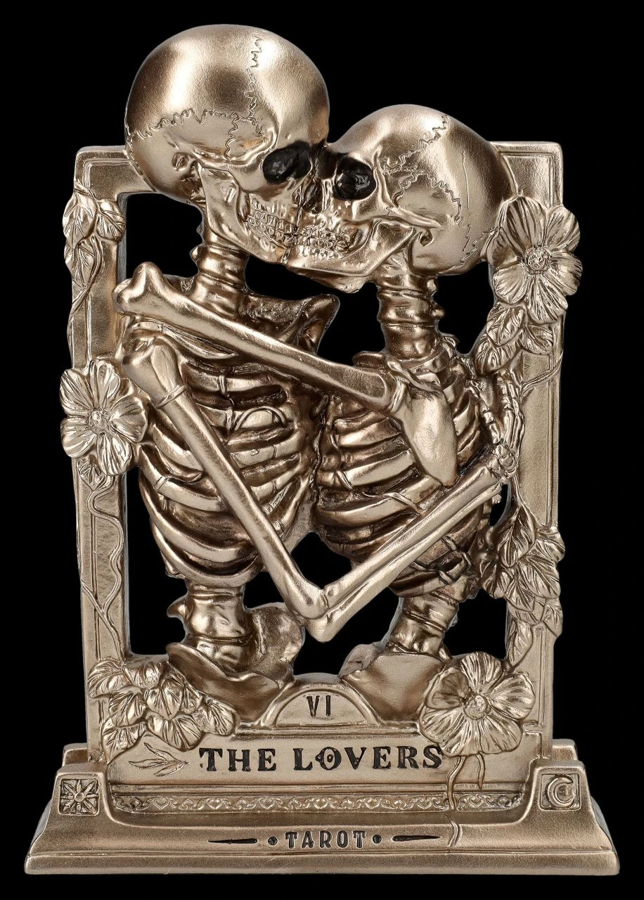 ‚The Lovers‘ steht auf dem wie eine Tarotkarte gestalteten Rahmen mit dem sich zärtlich küssenden Skelett-Liebespaar. Im Tarot geht es bei den Liebenden um die Bedeutung von Liebe, Sehnsucht, Partnerschaft und Entscheidungen. Dieses Skelett-Liebespaar zeigt auch, dass ihre Liebe bis über den Tod hinaus bestehen wird. Die 20,5 cm hohe, 14,5 cm breite und 6 cm tiefe Skelett-Dekofigur von Nemesis Now ist detailreich aus handbemaltem Kunststein (Polyresin) gefertigt. Sie ist auch ein vielsagendes Geschenk und kommt in einem toll bedruckten Geschenkkarton.