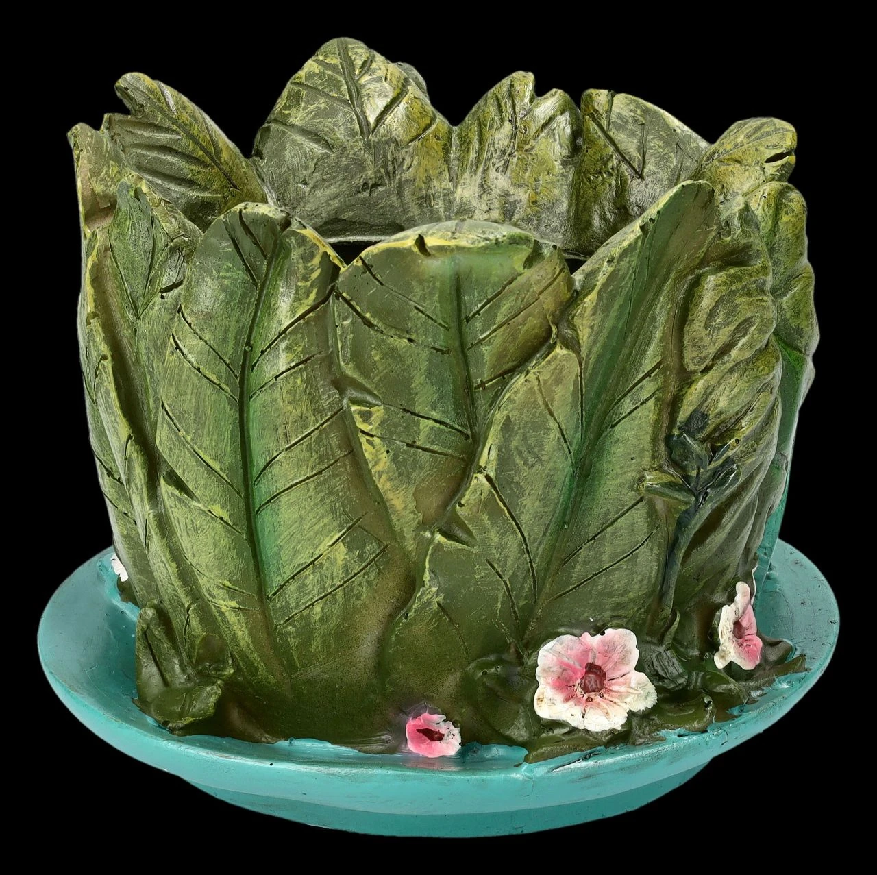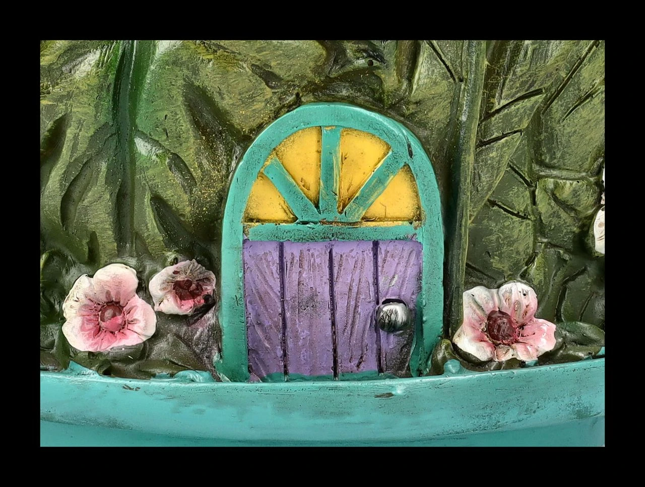 Die Elfe hat eine Kaffeetasse gefunden, mit grünen Blättern umwickelt und geschickt getarnt zu einem Häuschen umgebaut. In diesem niedlichen detailreichen Elfen-Haus aus liebevoll handbemaltem Kunststein (Polyresin) werden sich nicht nur Elfen, sondern auch Pflanzen sofort wohlfühlen. Es ist 12 cm hoch, 19 cm breit und 15 cm tief und kann ein Pflanzentöpfchen mit dem Durchmesser von ca. 9,5 cm aufnehmen. Natürlich kann das putzige Elfen-Haus auch direkt bepflanzt werden, da der Pflanzentopf ein Ablaufloch hat. Für jeden, der die Welt der Elfen liebt, ist dieser fantasievolle Pflanzentopf, der auf jeder Blumenbank zum Blickfang wird, ein absolut zauberhaftes Geschenk.