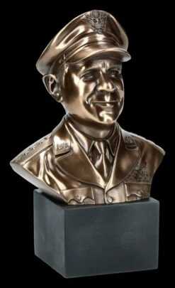 Der Pilot und General der US Air Force, James Harold Doolittle, auch Jimmy Doolittle genannt, wurde durch seine außergewöhnlichen fliegerischen Leistungen bekannt. Die edel bronzierte Büste aus Kunststein (Polyresin) des berühmnten Piloten ist 23 cm hoch, 14,5 cm breit und 10,5 cm tief. Für leidenschaftliche Flieger ist diese Büste das perfekte Geschenk und ein Blickfang für den Schreibtisch, das Büro oder natürlich auch für den Wohnbereich.