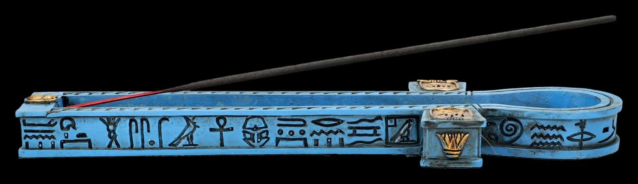 Wer sich für die faszinierende Geschichte des alten Ägyptens interessiert, wird sich über diesen schönen und stilvollen Räucherstäbchenhalter als Geschenk sicherlich sehr freuen. Das Ankh Kreuz stand im alten Ägypten für das Weiterleben im Jenseits und wurde dem Pharao von Gott als Symbol des Lebens überreicht. Bei diesem 2 cm hohen, 23,5 cm breiten und 8,5 cm tiefen Räucherstäbchenhalter aus blau mit goldenen Akzenten handbemaltem Kunststein (Polyresin) bildet das Ankh Kreuz das Becken für das Räucherstäbchen. Ein wunderschöner Räucherstäbchenhalter für die stillen Momente der Entspannung. Die Lieferung erfolgt ohne Räucherstäbchen, die Sie jedoch in großer Auswahl und in zahlreichen Duftrichtungen in unserem Shop finden können.
