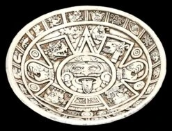 Wie das Fundstück einer Ausgrabung, so fantastisch sieht diese Azteken Schale als Räucherstäbchenhalter aus. Die 2,5 cm hohe Schale hat einen Durchmesser von 12,5 cm und ist detailreich aus handbemaltem Kunststein (Polyresin) gefertigt. Die Lieferung erfolgt ohne Räucherstäbchen, die jedoch in großer Auswahl in unserem Shop zu finden sind.
