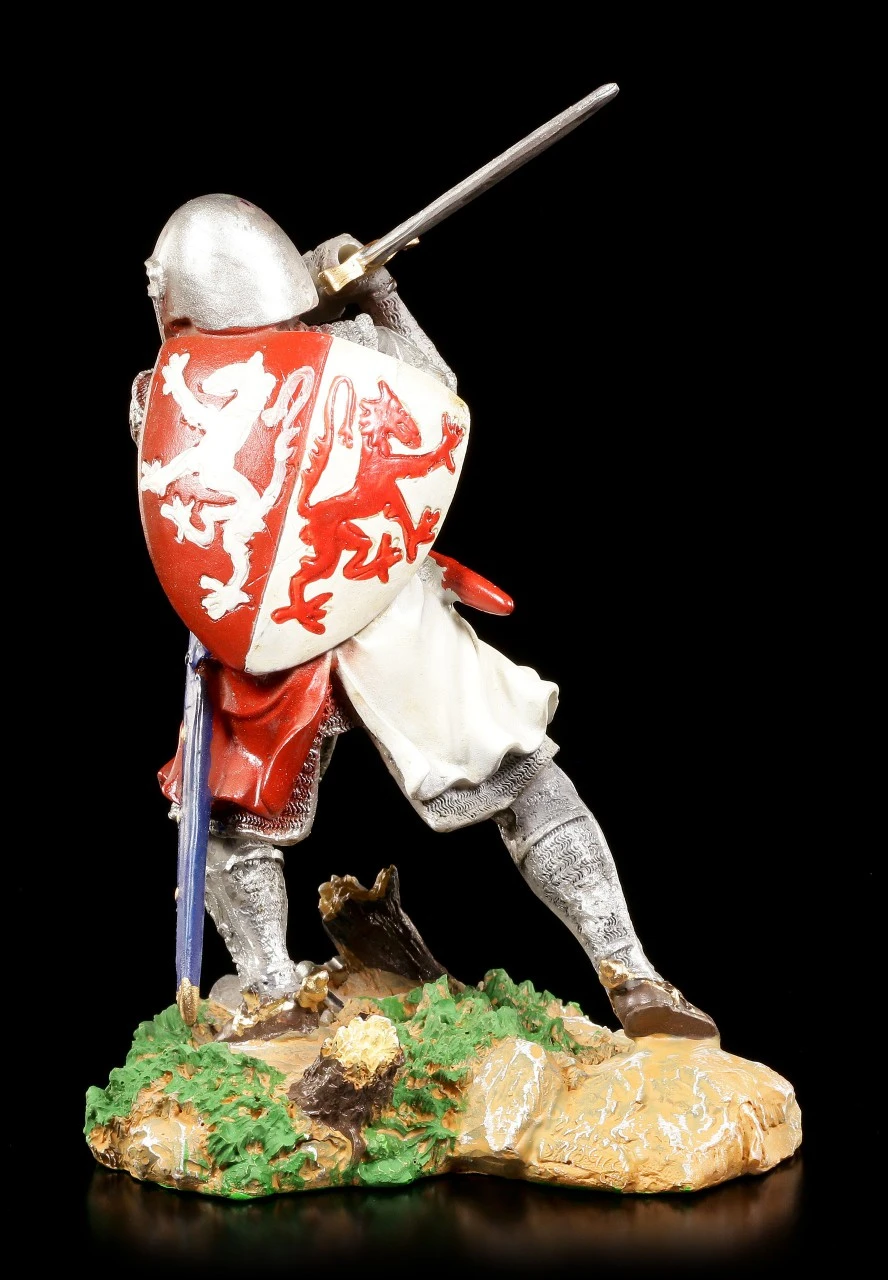 Dies ist eine sehr ausdrucksstarke Ritter Figur, die jede Sammlung perfekt ergänzt. Der Ritter steht auf dem Schlachtfeld und schwingt sein mächtiges Schwert. Die Figur ist sehr realistisch gearbeitet – fast als ob der Ritter in der Bewegung eingefroren wäre.