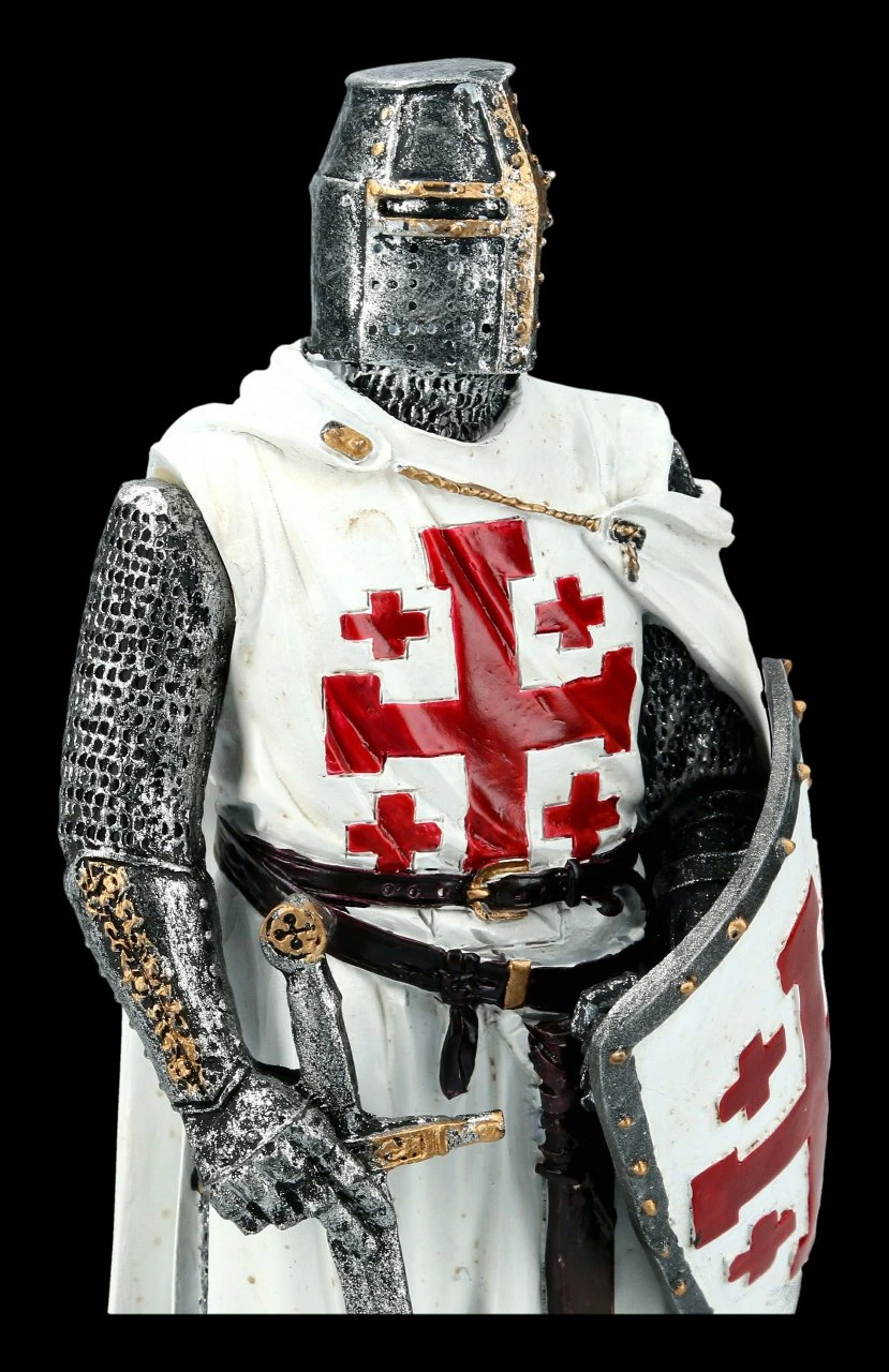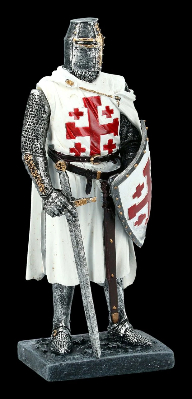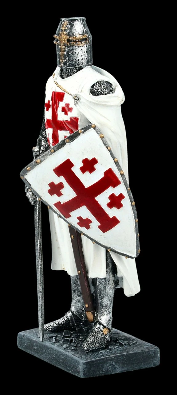 Die Grabesritter Figur stellt einen Ritter aus dem Orden vom Heiligen Grab zu Jerusalem dar. Der prächtige Ritter mit dem Wappen auf dem großen Schild und dem Schwert ist bis zur Ritterrüstung sehr ausführlich aus Kunststein (Polyresin) gefertigt und mit vielen Details sorgsam handbemalt. Die außergewöhnliche Ritter Figur ist 18 cm hoch, 7,5 cm und 6 cm tief. Sie ist sicher für alle Sammler von Ritter Figuren ein interessantes Geschenk.