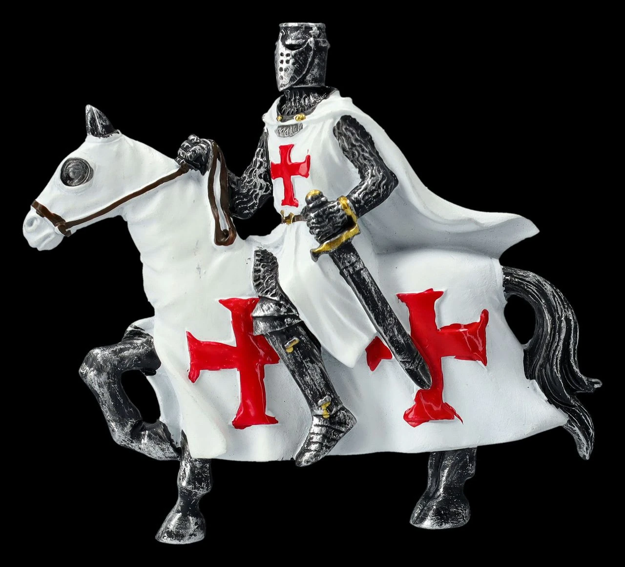 Das fantastische Magnete-Set mit den Kreuzrittern aus handbemaltem Kunststein (Polyresin) besteht aus 2 x 6 Rittern mit unterschiedlichen Schwertern. Mit den leuchtend roten Kreuzen auf ihren weißen Umhängen und den ebenfalls weißen Decken der Pferde mit roten Kreuzen sind die Ritter-Magnete nicht nur sehr dekorativ, sondern auch sehr praktisch. Die Ritter sind jeweils 8 cm hoch, 9 cm breit und 1,5 cm tief. Dieses herrliche 12er Set Magnete mit Kreuzrittern auf ihren Pferden sind ein perfektes Geschenk und fantastisch dazu geeignet, mit Ritter-Freunden geteilt zu werden.