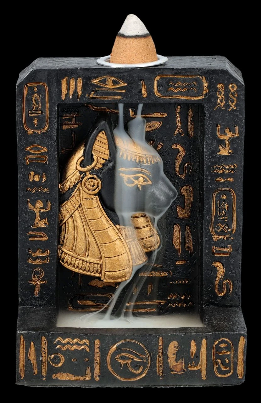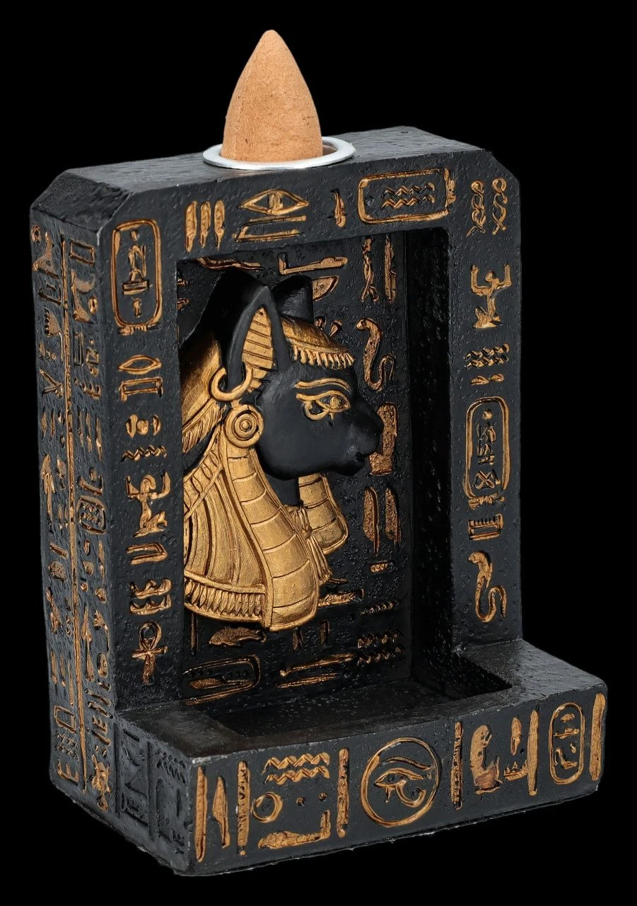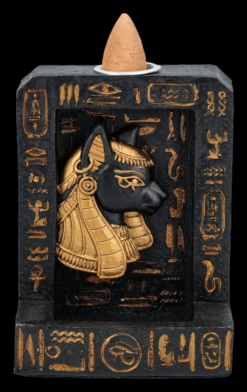Ägyptische Mystik: Rückfluss-Räucherhalter mit Bastet-Relief