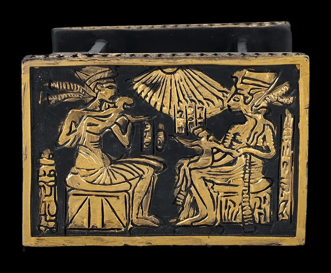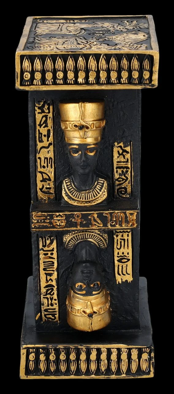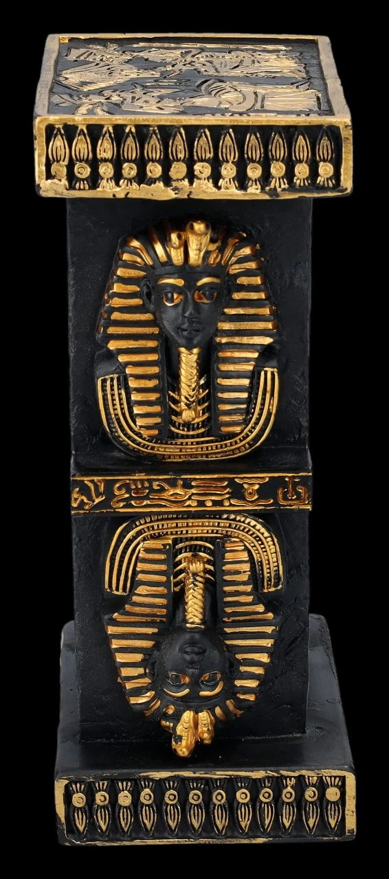 Ausgesprochen edel wirkt diese fantastische schwarze Sanduhr, die von ägyptischen Pharaoen gehalten wird. Die faszinierende, 15 cm hohe, 9 cm breite und 6 cm tiefe wie ein altägyptisches Tor wirkende Sanduhr wurde detailreich aus Kunststein (Polyresin) gegossen. Durch die schöne Handbemalung in Schwarz mit den goldenen Akzenten kommt der helle Sand, der in ca.04:45 Min. durch die Sanduhr aus Glas rieselt, besonders gut zur Geltung. Die interessante Sanduhr ist ein perfektes Geschenk für alle, die vom alten Ägypten mit ihren Göttern und Pharaonen fasziniert sind.