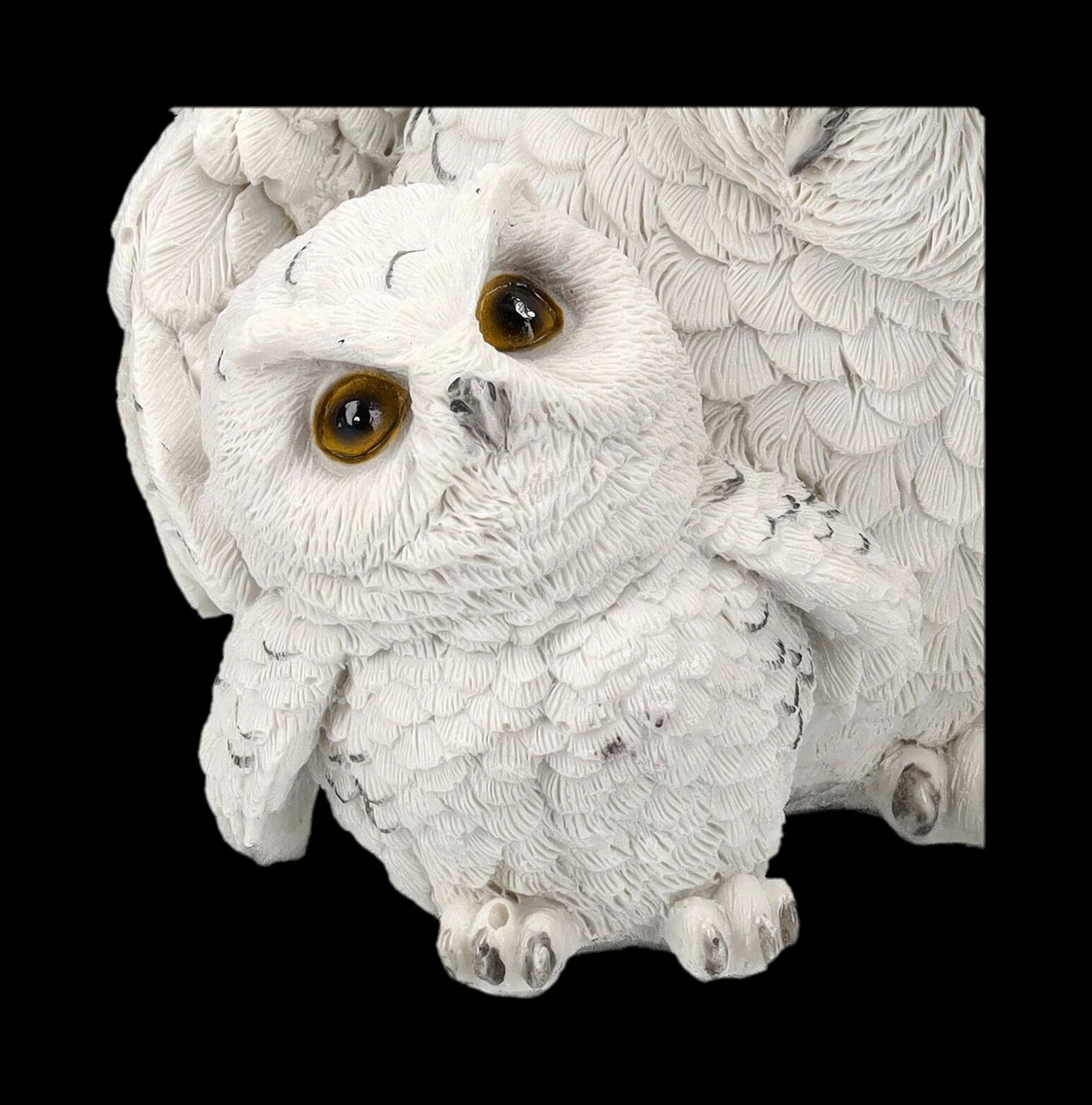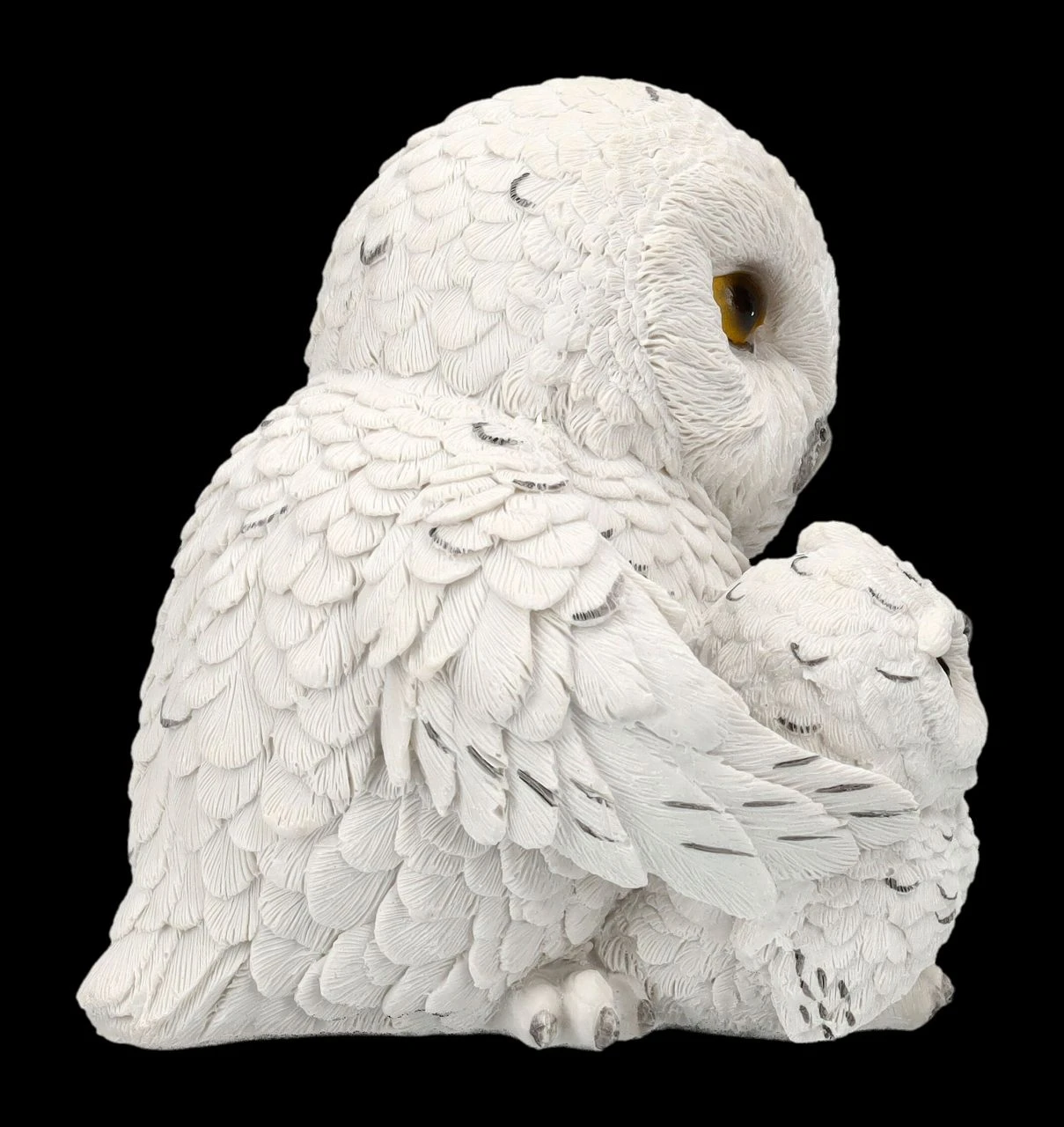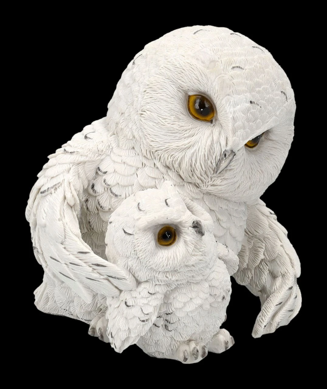 ‚Wenn du das nächste Mal Flugübungen machst, sag mir vorher Bescheid‘, besorgt schaut die Muttereule ihr Junges an. Sind die beiden nicht süß? Die 13,5 cm hohen, 12,5 cm breiten und 12 cm tiefen Schneeeulen wurden liebevoll aus handbemaltem Kunststein (Polyresin) gefertigt. Feathered Guide ist auch ein niedliches Geschenk nicht nur für alle, die Eulen lieben.