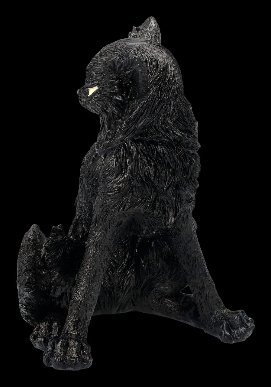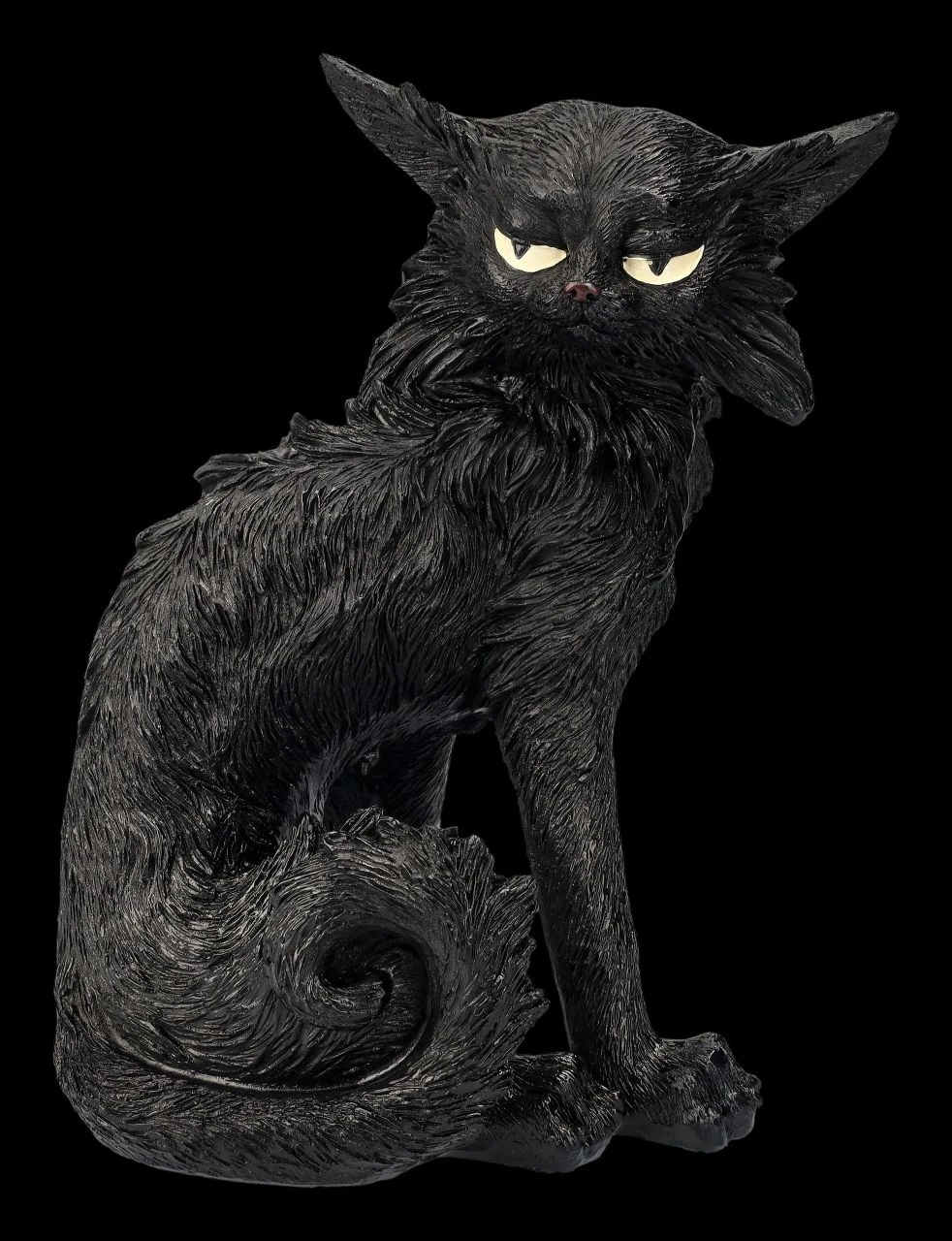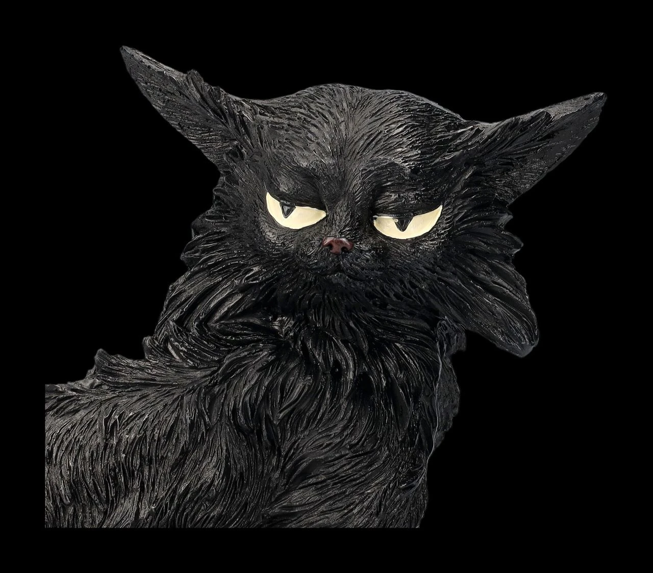 ‚Wo bleibst du nur so lange‘ scheint der ungeduldige Blick der kleinen schwarzen Hexenkatze zu sagen. Die Vorderpfoten fest auf den Boden gestützt sitzt die kleine Salem aus handbemaltem Kunststein (Polyresin) da und nur ihre Augen leuchten aus dem struppigen Fell hervor. Die 19 cm hohe, 13 cm breite und 14 cm tiefe Katzen-Figur ist das perfekte Geschenk für alle kleinen und großen Hexen, die vielleicht gerne mal etwas trödeln.