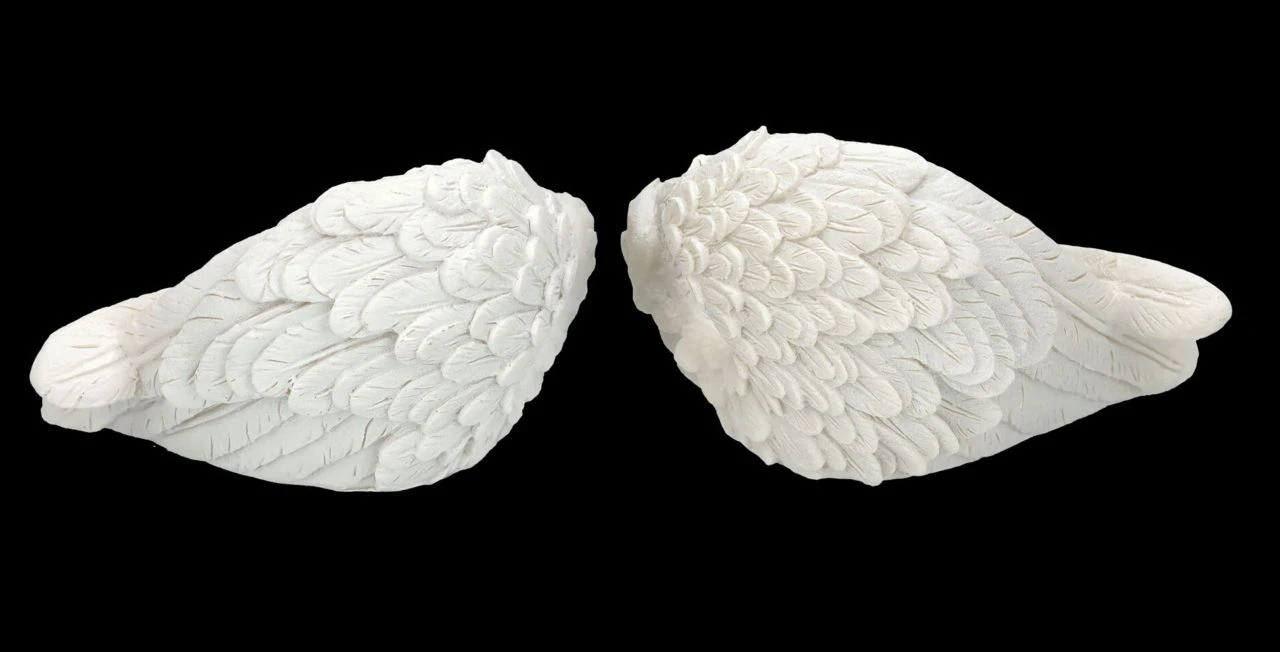 ‚Denkst du an Engel, so bewegen sie ihre Flügel‘, sagt der Volksmund. Nun, bewegen werden sich diese detailreichen Engelsflügel aus liebevoll handbemaltem Kunststein (Polyresin) zwar nicht, aber sie behüten die Flammen der Teelichter, die von den Flügeln gehalten werden. Die wunderbaren je 7,5 cm hohen, je 12 cm breiten und je 8,5 cm tiefen weißen Engelsflügel kommen im 2er Set. Sie sind ein schönes Geschenk, das man sich mit lieben Freunden teilen kann, sie sind aber auch für jeden Hochzeitstisch eine fantastische Deko. Die Lieferung erfolgt ohne Teelichter.
