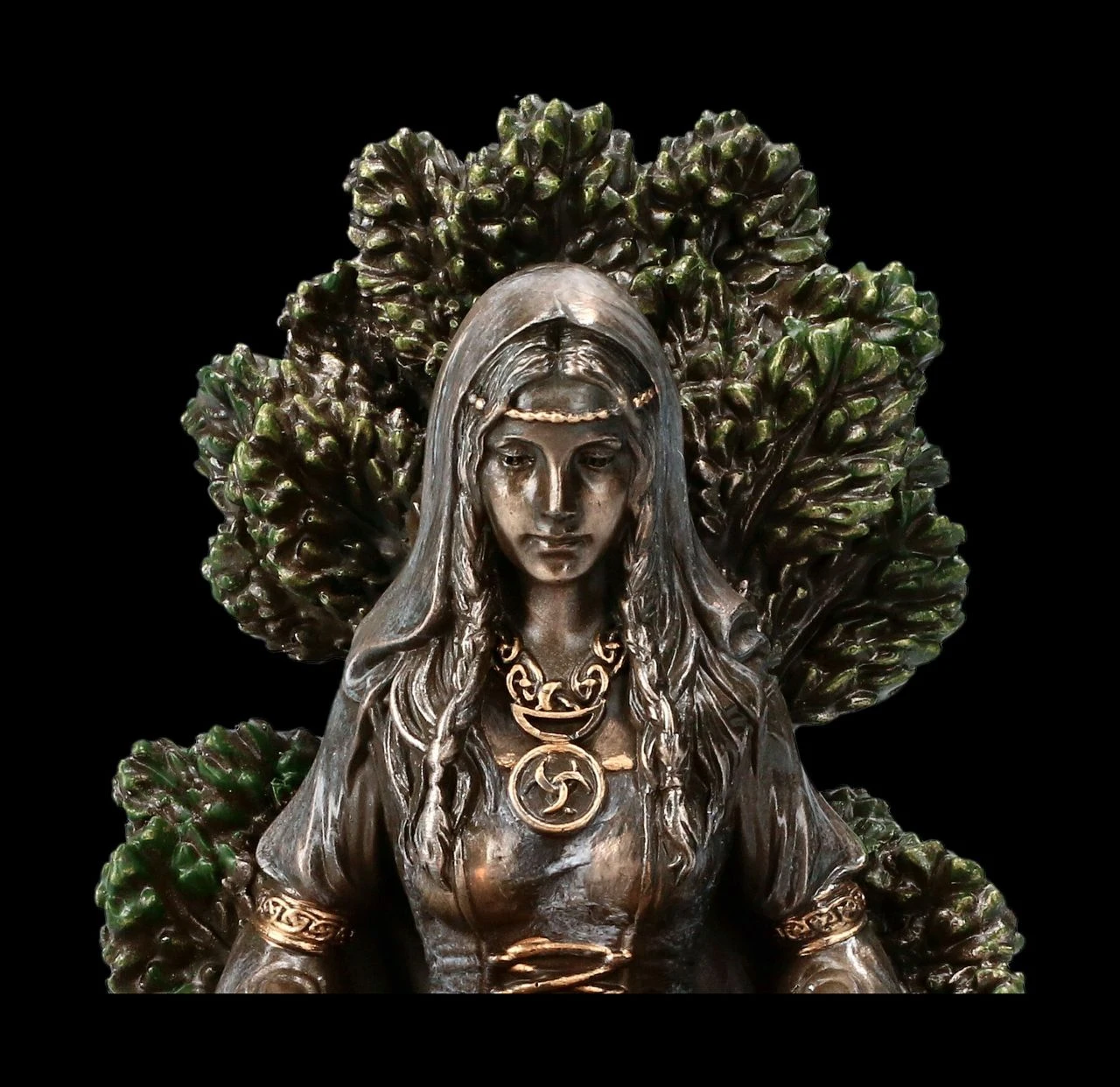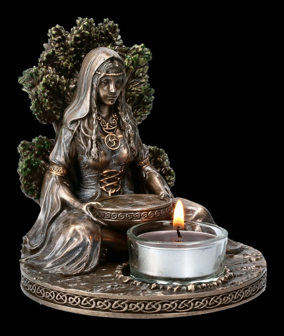 Die Göttin Danu gilt in der irisch-keltischen Mythologie als Mutter der Götter, Herrin des Volkes der Danu und als wichtigste Darstellung für das weibliche Prinzip. Mit diesem stilvollen und dekorativen Teelichthalter aus der Studio Collection von Veronese holen Sie sich die Magie der Göttin Danu in Ihr Zuhause. Der 12 cm hohe, 12 cm breite und 13 cm tiefe Teelichthalter mit der wunderschön dargestellten Göttin Danu ist außerordentlich detailreich aus edel bronziertem und sehr fein coloriertem Kunststein (Polyresin) gefertigt. Er bietet Platz für ein Teelicht mit den Maßen H: ca. 1,3 cm/ D: ca. 3,6 cm. Die Lieferung erfolgt ohne Teelicht.