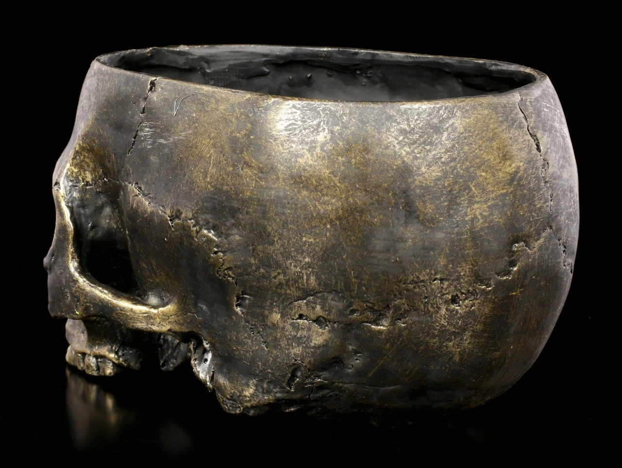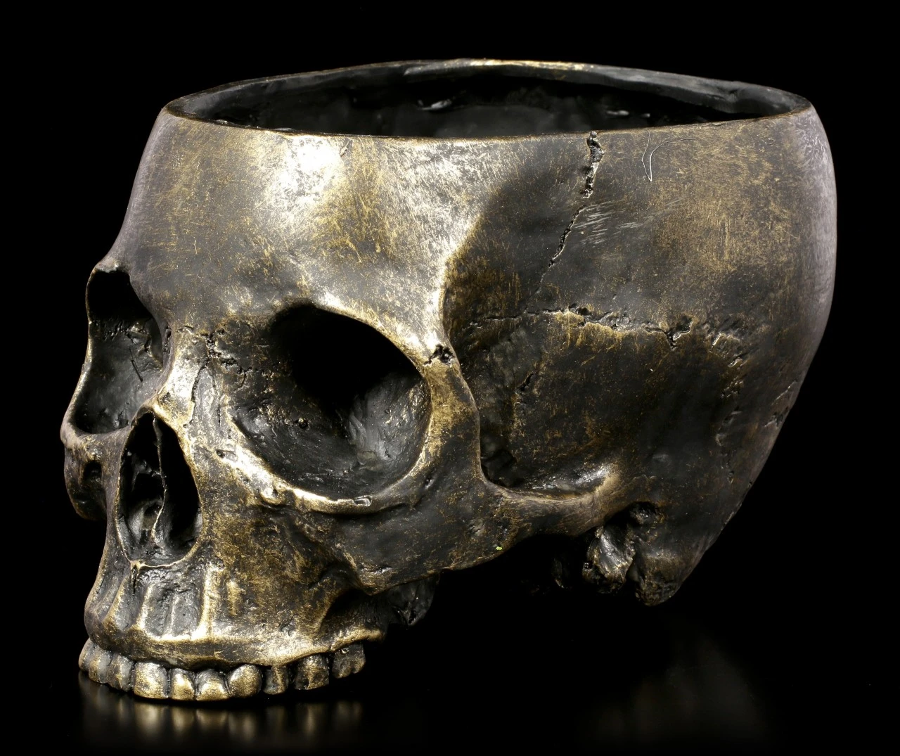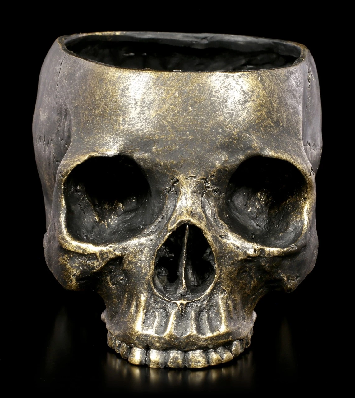 Egal ob als Blumentopf oder als Süßigkeitenschale zu Halloween, mit diesem Schädel aus handbemaltem Kunststein (Polyresin) liegen Sie immer richtig. Ein vielseitig nutzbarer Totenkopf – was will man mehr?!