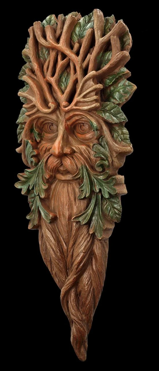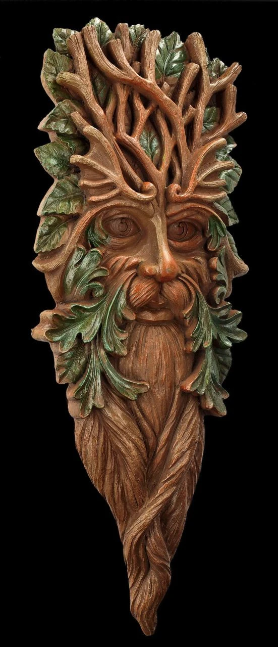 Als würde aus einem alten Eichenstamm ein Gesicht hervorschauen, so fantastisch ist dieser sorgfältig und detailreich aus handbemaltem Kunststein (Polyresin) gefertigte Baumgeist Der Baumgeist wird in vielen Traditionen auch als Herr des Waldes, als Greenman oder auch als der ‚Gott mit den Blättern‘ bezeichnet und verehrt. Als Lichtwesen steht er für Harmonie und die wichtige Verbindung von Geist und Natur. Die beeindruckende, 41 cm hohe, 16 cm breite und 5 cm tiefe Wanddeko mit dem traditionellen Baumgeist ist zum Hängen und passt perfekt in jede Pflanzenecke.