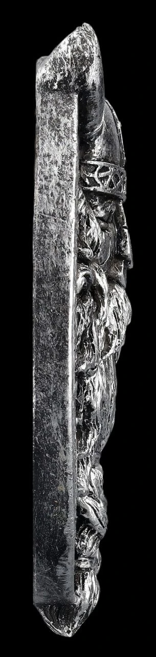 Gleich zwei Bereiche ihrer Wohnung können Bewunderer von Allvater Odin mit diesem fantastischen Wandrelief schmücken. Es zeigt den einäugigen Allvater Odin, den Gott aus Valhalla und der himmlischen Festung Asgard. Der Gott der Götter und Herr über Krieg und Tod, aber auch über Weisheit und Wissen ist auf den beiden Wandreliefs mit dem Durchmesser von 12 cm und der Tiefe von 2 cm wie auf einem Medaillon abgebildet. Lediglich die Hörner seines Helmes überragen die runde Scheibe. Das 2er-Set ist aber auch eiin perfektes Geschenk für Wikinger-Freunde, mit denen das detailreich aus handbemaltem Kunststein (Polyresin) gefertigte Wandrelief geteilt werden kann.