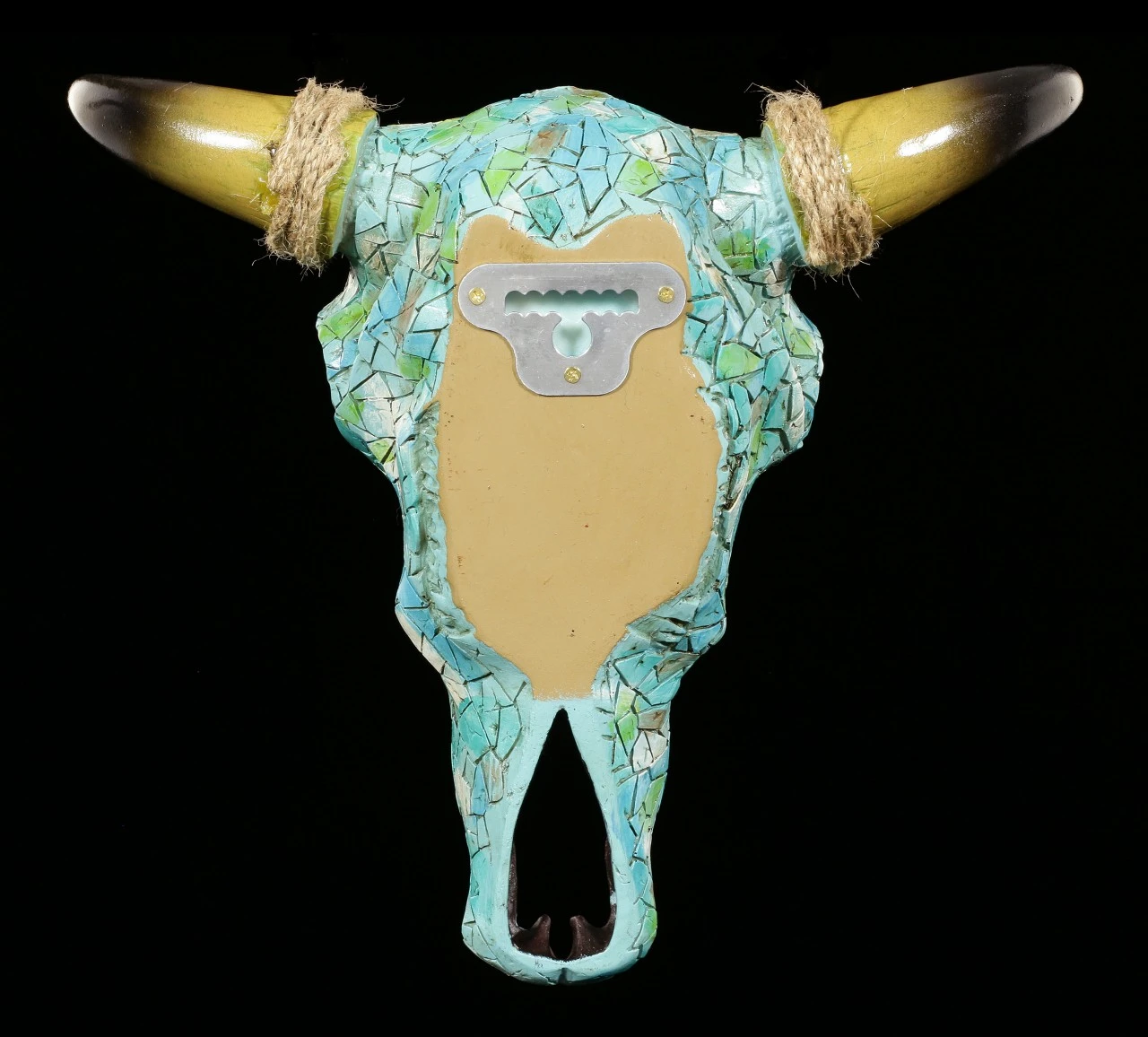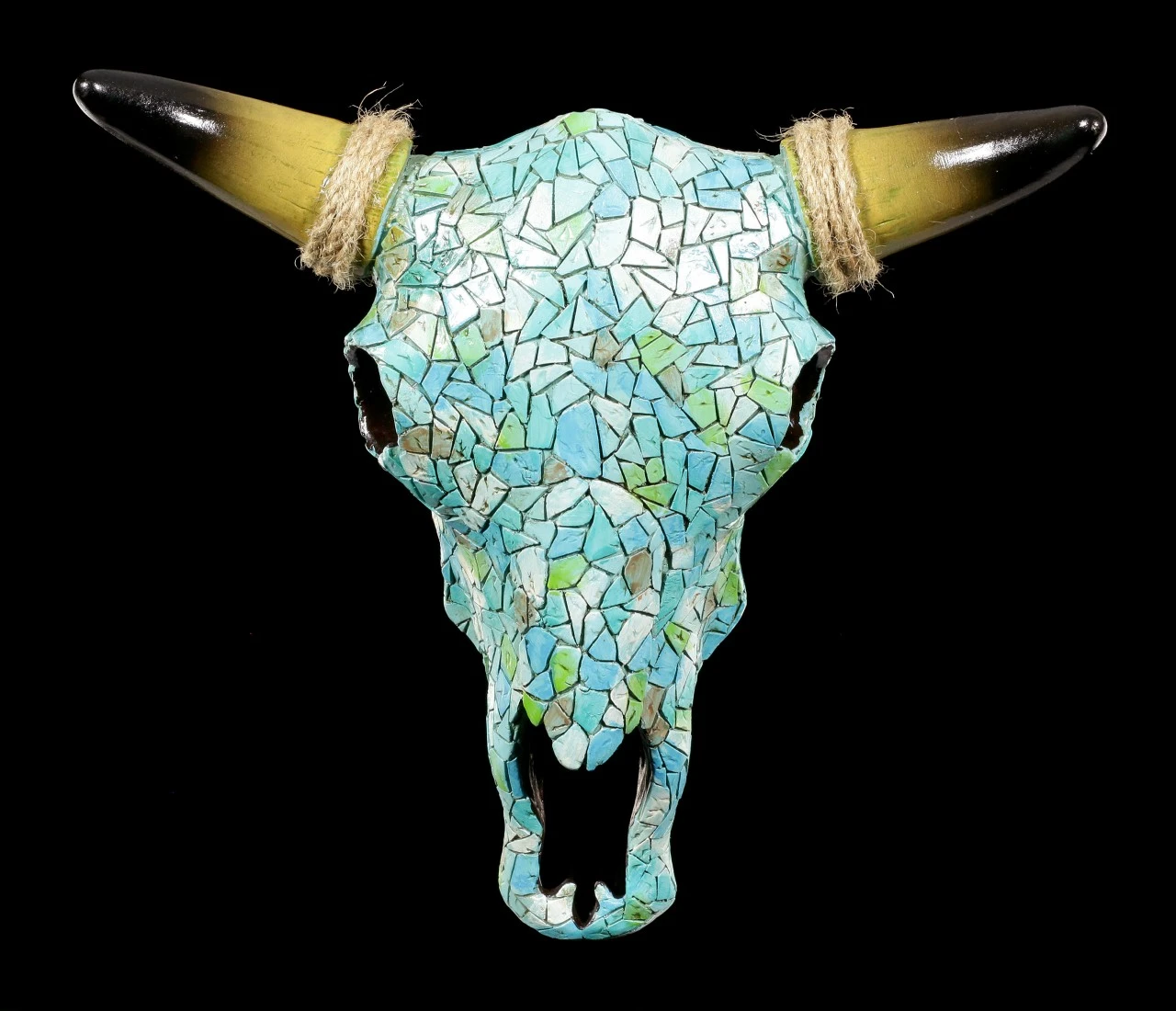 Dieser außergewöhnliche Bullenschädel schmückt stilvoll Ihre Wand. Das Wandrelief hebt sich mit seiner türkisen Farbe gezielt hervor und verströmt einen Hauch vom Wilden Westen.